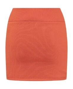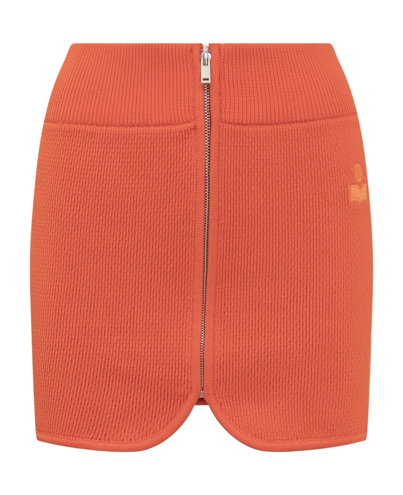Orange mini skirt. Zip closure on the front. Embroidered logo on the front.