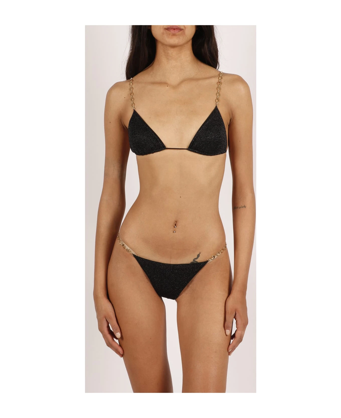 Os?ree bikini in lurex, with gold metal O-Ring chain details. – SS23