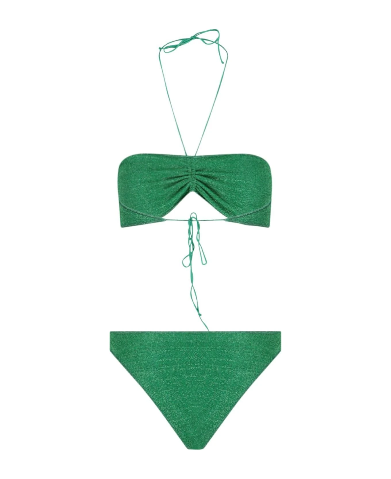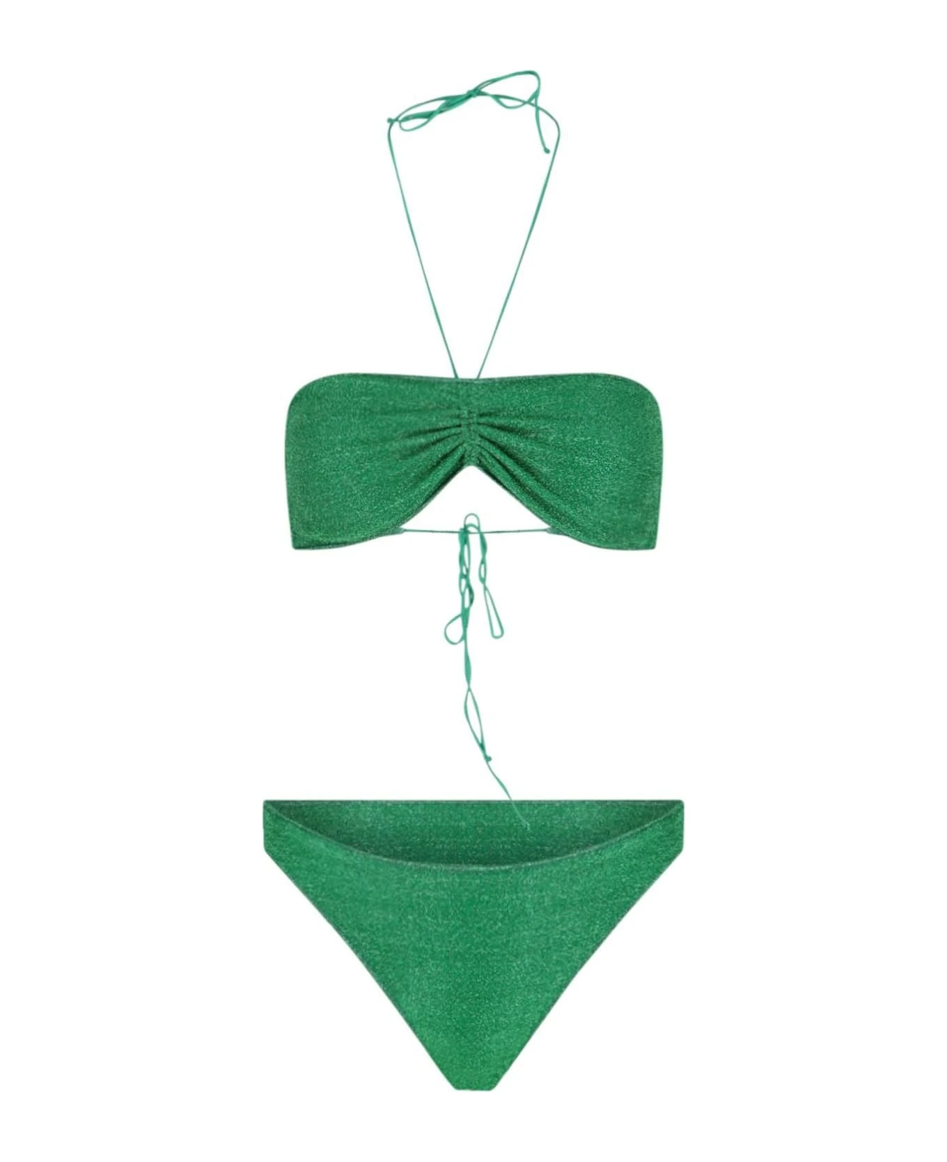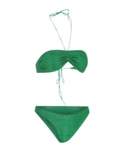 Oseree ‘Lumie’ bikini made in green lurex fabric with adjustable neck laces, adjustable back laces, high high top, comes with logo dustbag.