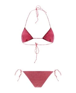 Lumiere swimsuit by oseree, bikini model, triangle top, back closure with ties to tie, adjustable panty brief with side ties, monochrome pattern with all-over glitter.