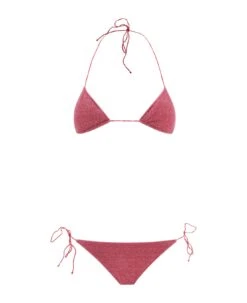 Lumiere swimsuit by oseree, bikini model, triangle top, back closure with ties to tie, adjustable panty brief with side ties, monochrome pattern with all-over glitter.