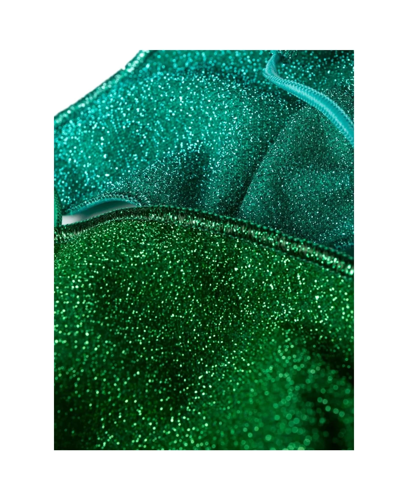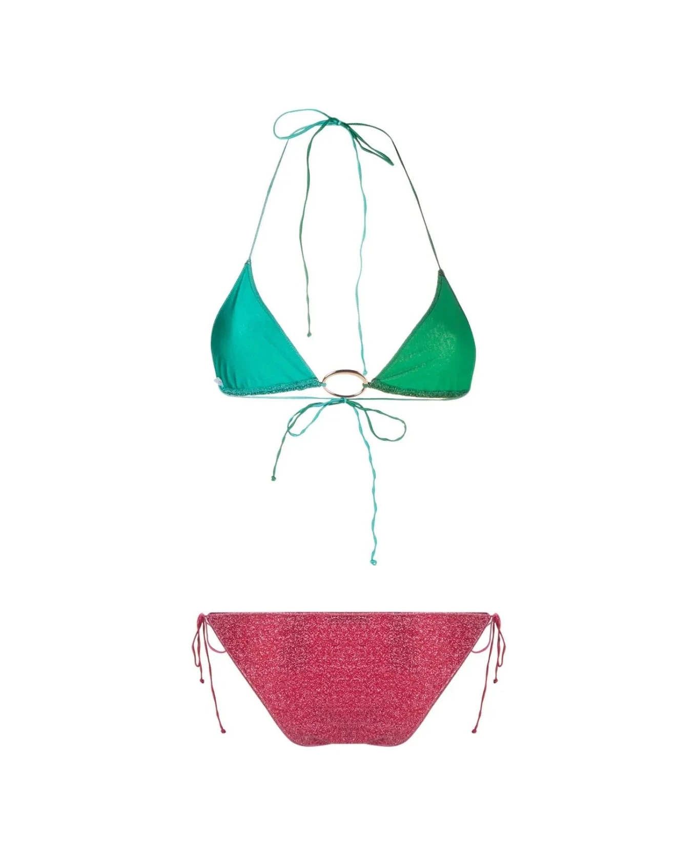 O Gem Colore bikini by Oseree made from multicoloured lurex fabric, finished with metal rings and composed of low-waist briefs with side fastening and triangle top with back fastening.