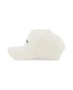 Palm Angels baseball cap crafted in cotton canvas with a front logo embroidery. It features an adjustable back closure, self-cover top button, embroidered ventilation eyelets, structured front panles, and topstitched visor. Unlined.