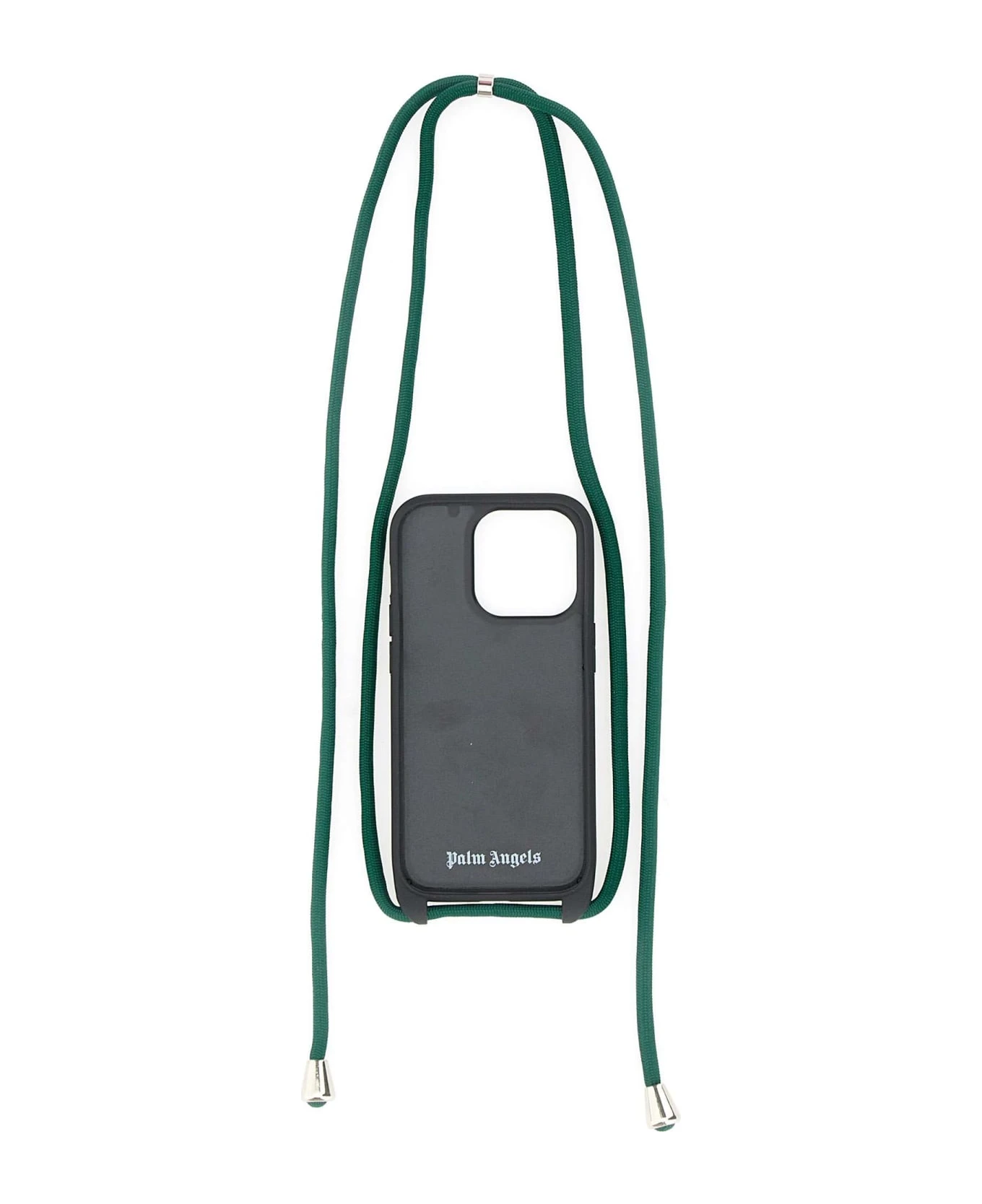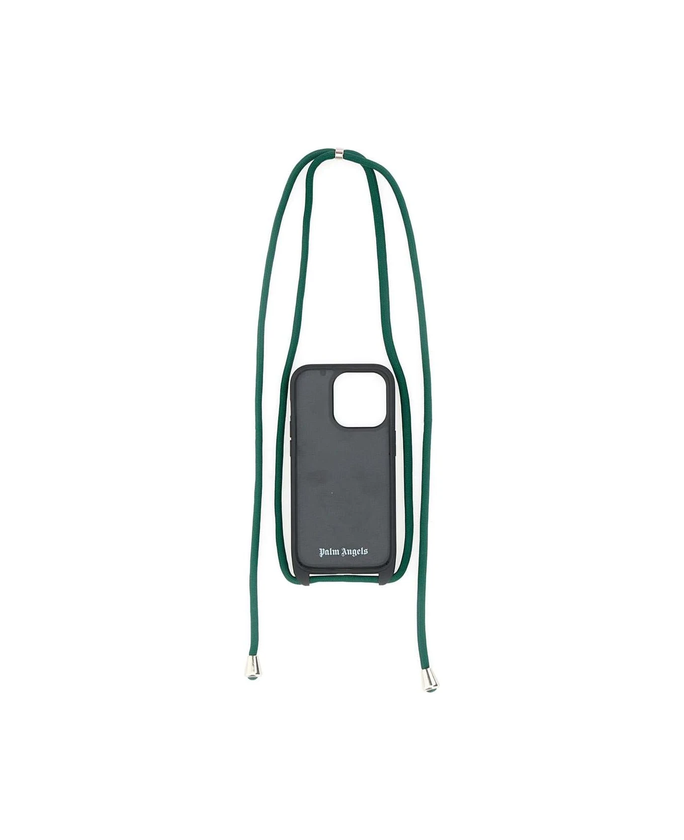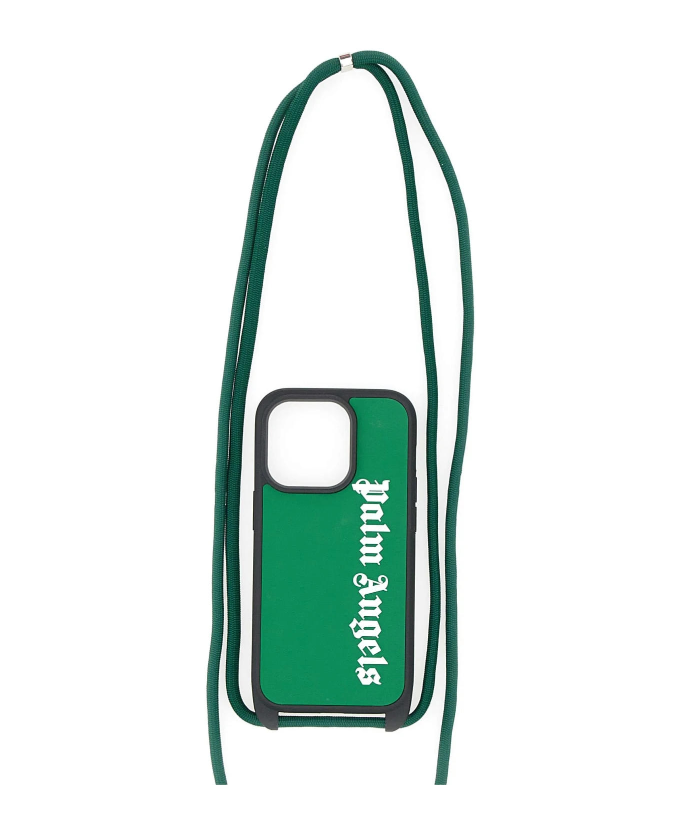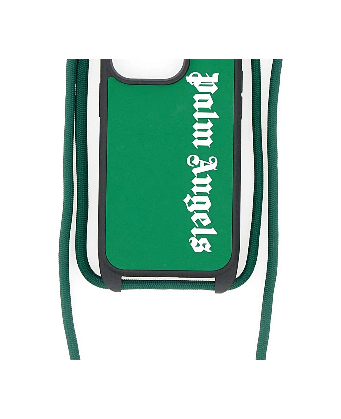 Palm Angels “Classic logo iPhone Case”, green color, white logo, suitable for iPhone 13 Pro, logo printed inside, with lanyard. Measurements: height 14cm, width 7cm, depth 1cm.