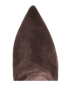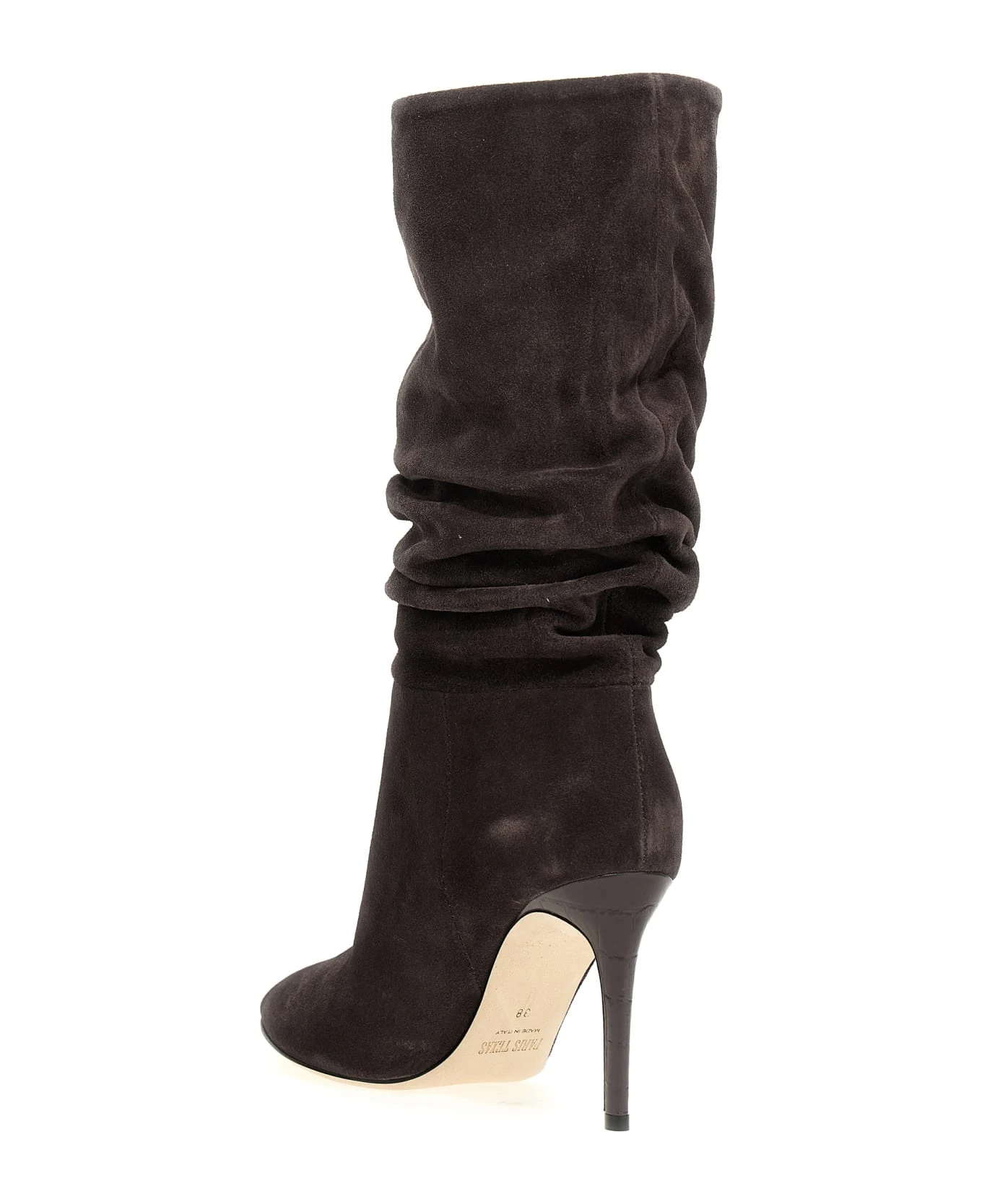 Slouchy’ suede boots with croc print leather heels.
