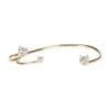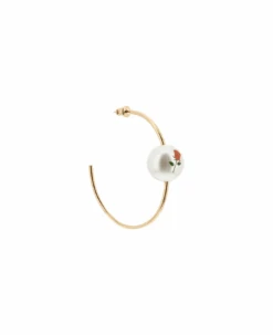 Saf Safu hoop earrings crafted in 24k gold pleated brass, enriched by a faux pearl with a small printed rose. Post back closure, for pierced ears.