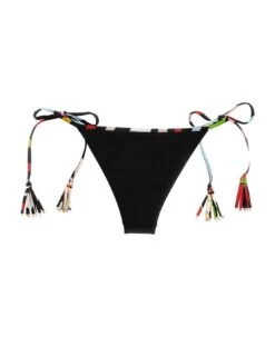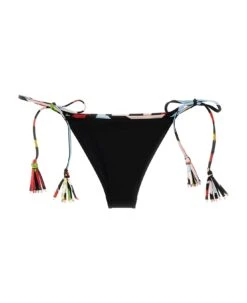 Bikini briefs in a stretch fabric with print on the edging and a lacing on the sides.