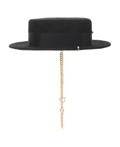 Where softness meets boldness. The gold- and silver-tone details, such as piercing, pin and a massive chain, add a light grungy vibe. Use it from day to night, to accentuate your summer outfit. No matter if it s a romantic dress or wide pants with an oversized t-shirt, your canotier hat will enhance each of them. DESIGNER ID: CNT033 F-PRS-CHA BLACK