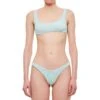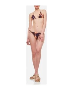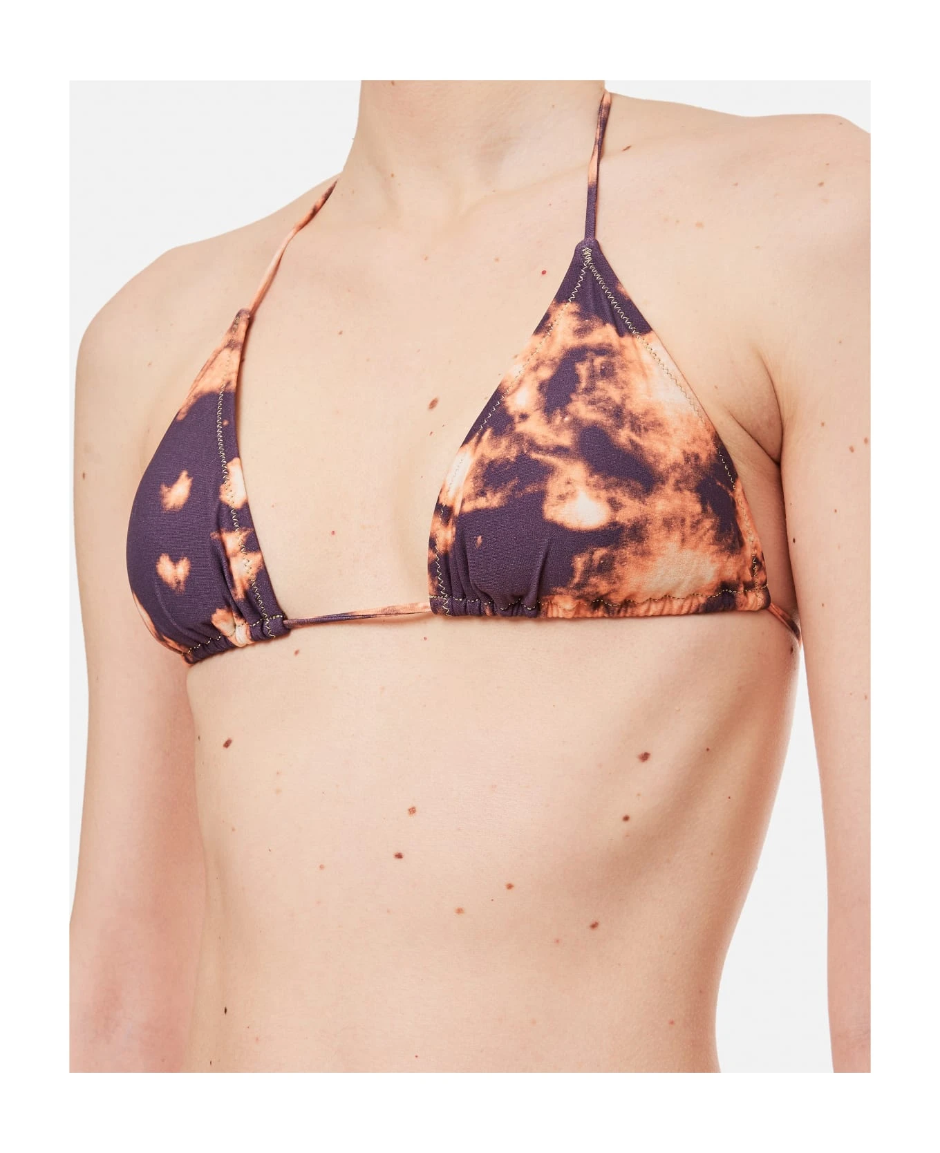 Includes bikini top and bottoms Triangle cut top with removable padding Elastic waistband Color: multicolor