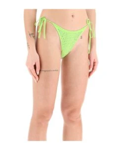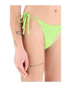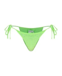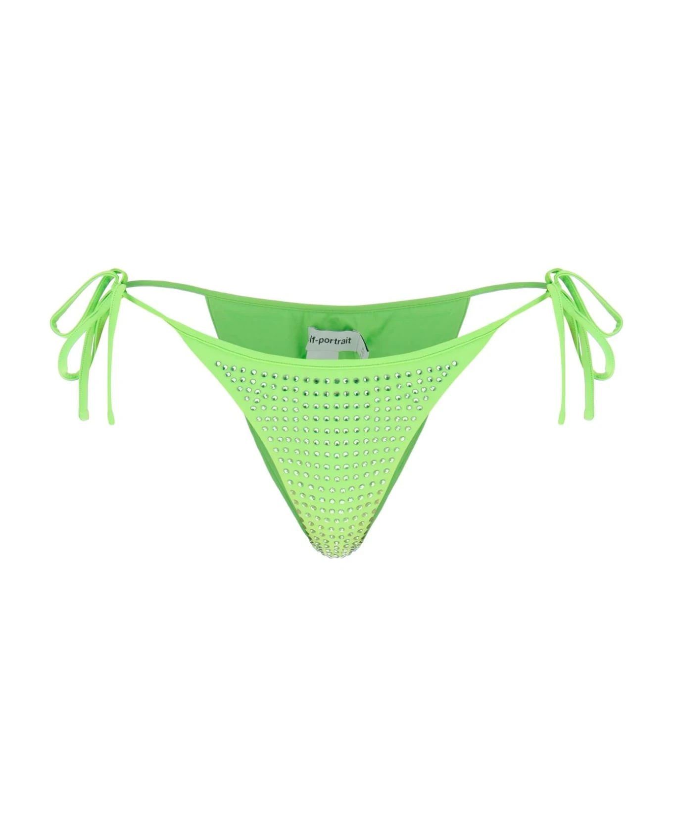 Bikini bottom by Self Potrait in stretch technical fabric with applied crystals and side ties. The model is 177 cm tall and wears a size UK 6.