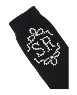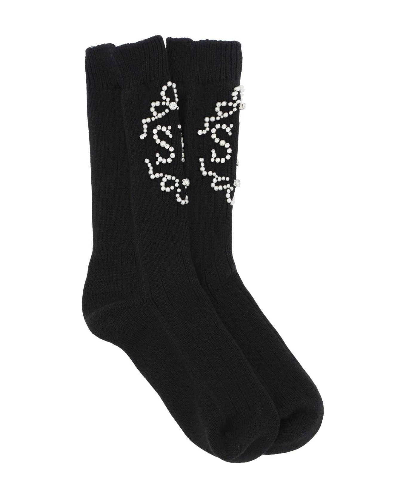 Simone Rocha ribbed knit cotton socks embellished with SR logo in crystals and pearls. One size fits all.