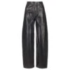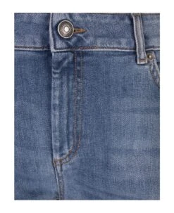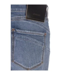 Mexico jeans by Sportmax made of indigo stretch denim with a dark used and medium vintage treatment. The construction is low-waisted, with Perfect cuts that create an impeccable fit and emphasise the silhouette. The leg has an ironed crease with a flared line at the bottom. The model is completed with contrast stitching, rivets and a personalised metal button. Back leather label with embossed logo.