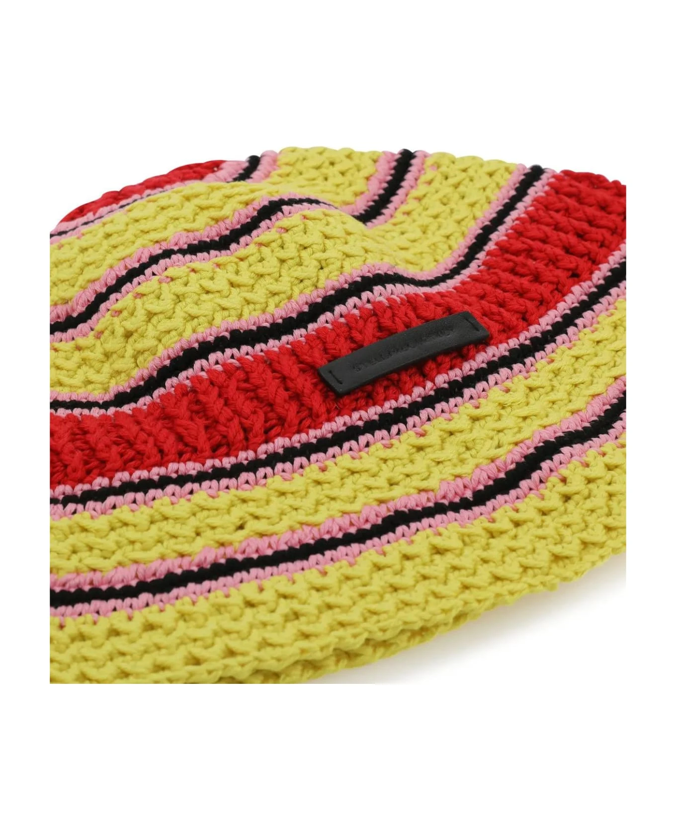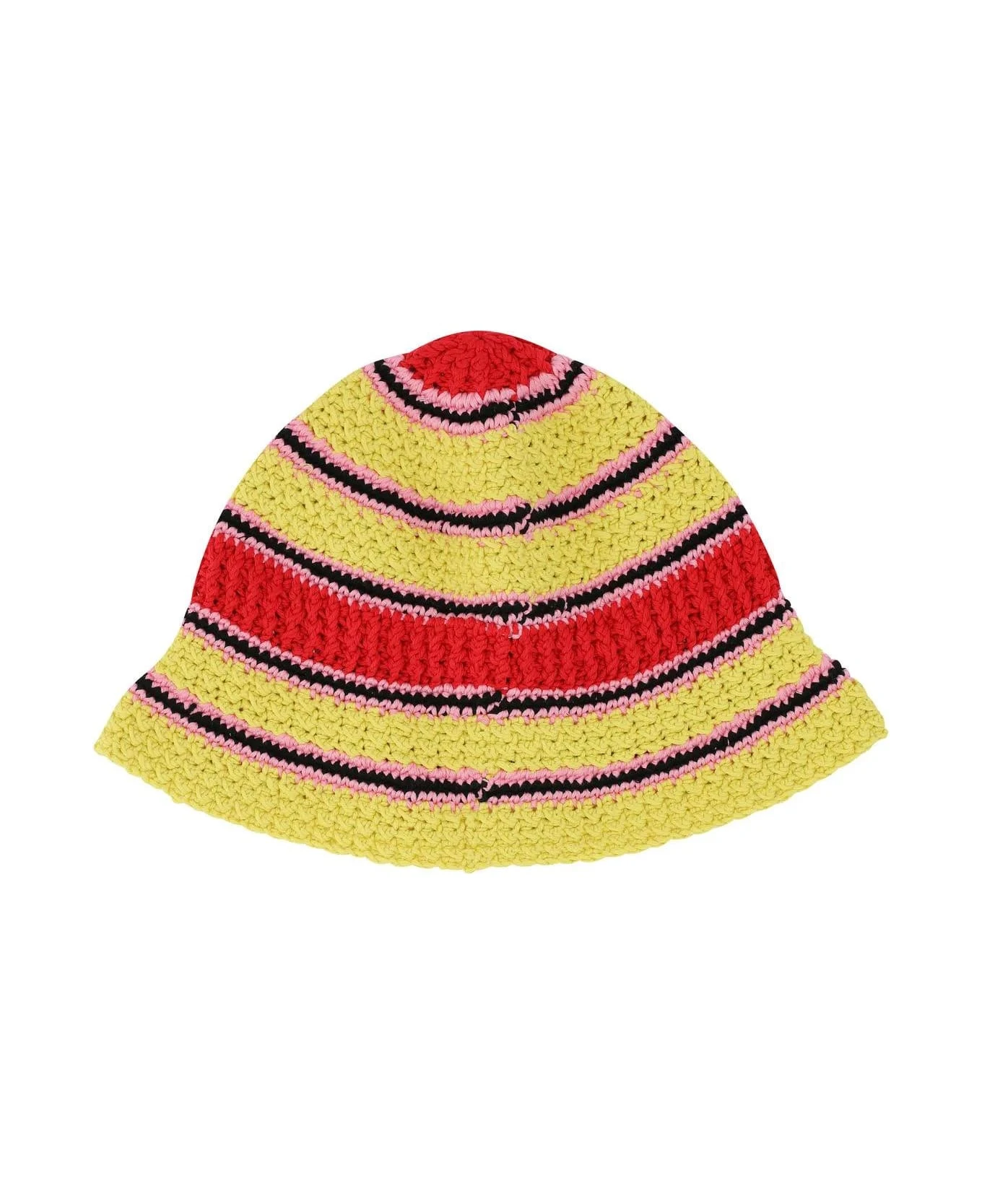 Hat realized in pure cotton crochet characterized by striped embroidery on the entire surface enriched by logoed patch at the front.