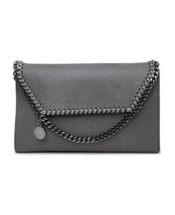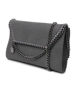Iconic chain on the front border, flap with snap closure, Stella McCartney logo engraved pendant, inner slip pocket, chain shoulder strap. n22 x 14 x 2. 5 cm