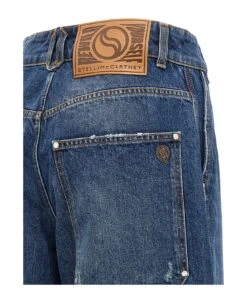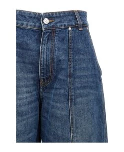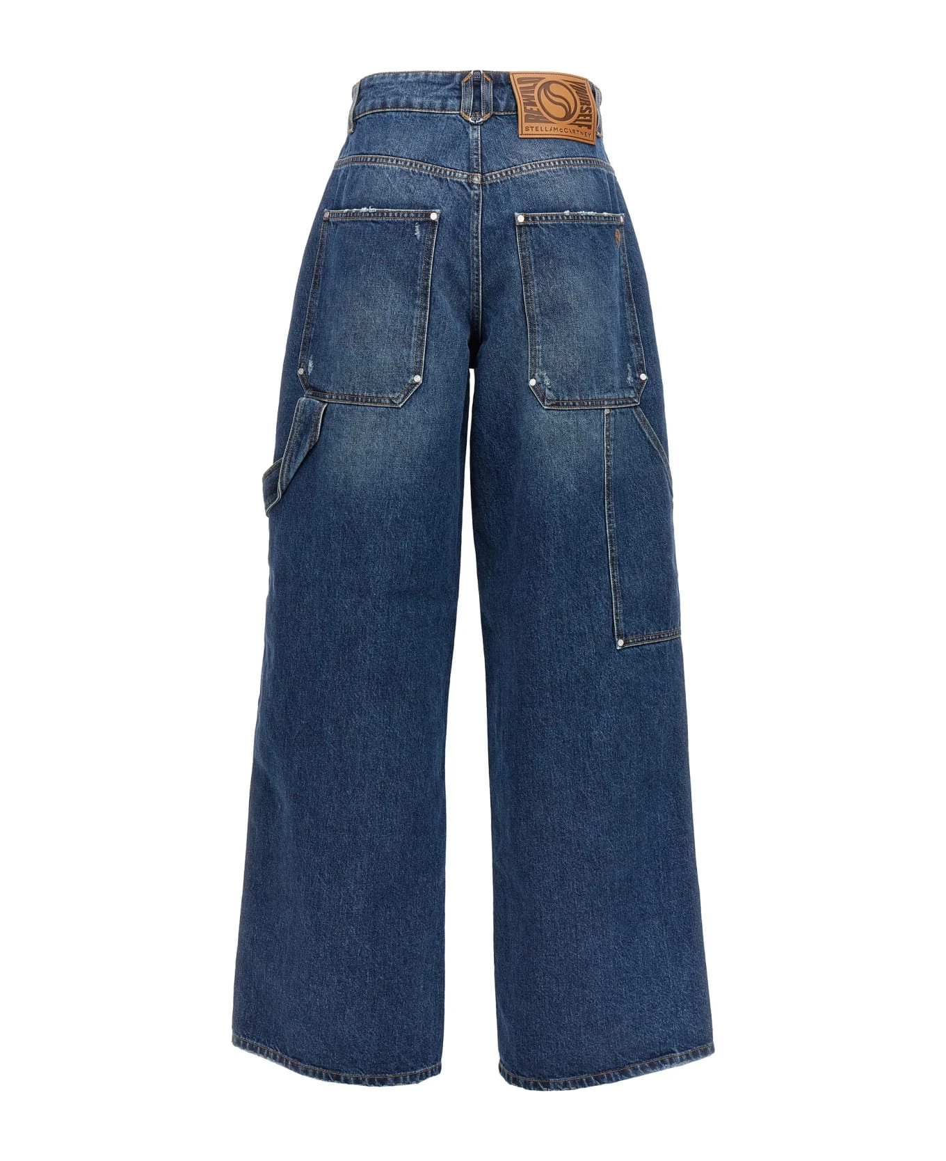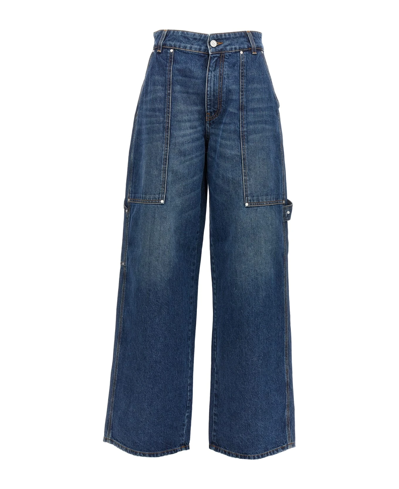Workwear dark blue vintage wash cotton denim jeans with zipper and button closure, pockets and used-effect details.