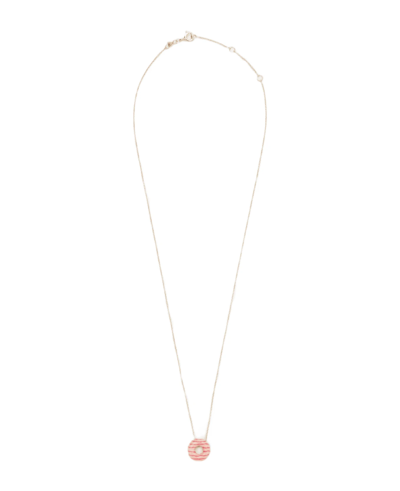 9kt yellow gold rolo chain with ring clasp Hand painted enamel pendant Adjustable lenght 41 – 43 – 45 cm Color: pink