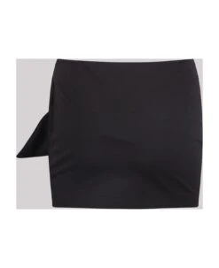 Daiki tie-knit mini skirt from THE ATTICOStretch-jersey. Draped design. Bow detailing. Concealed side zip fastening. Low-rise. Straight hem. 68% Rayon, 27% Polyamide, 5% Elastane. Made in Italy.