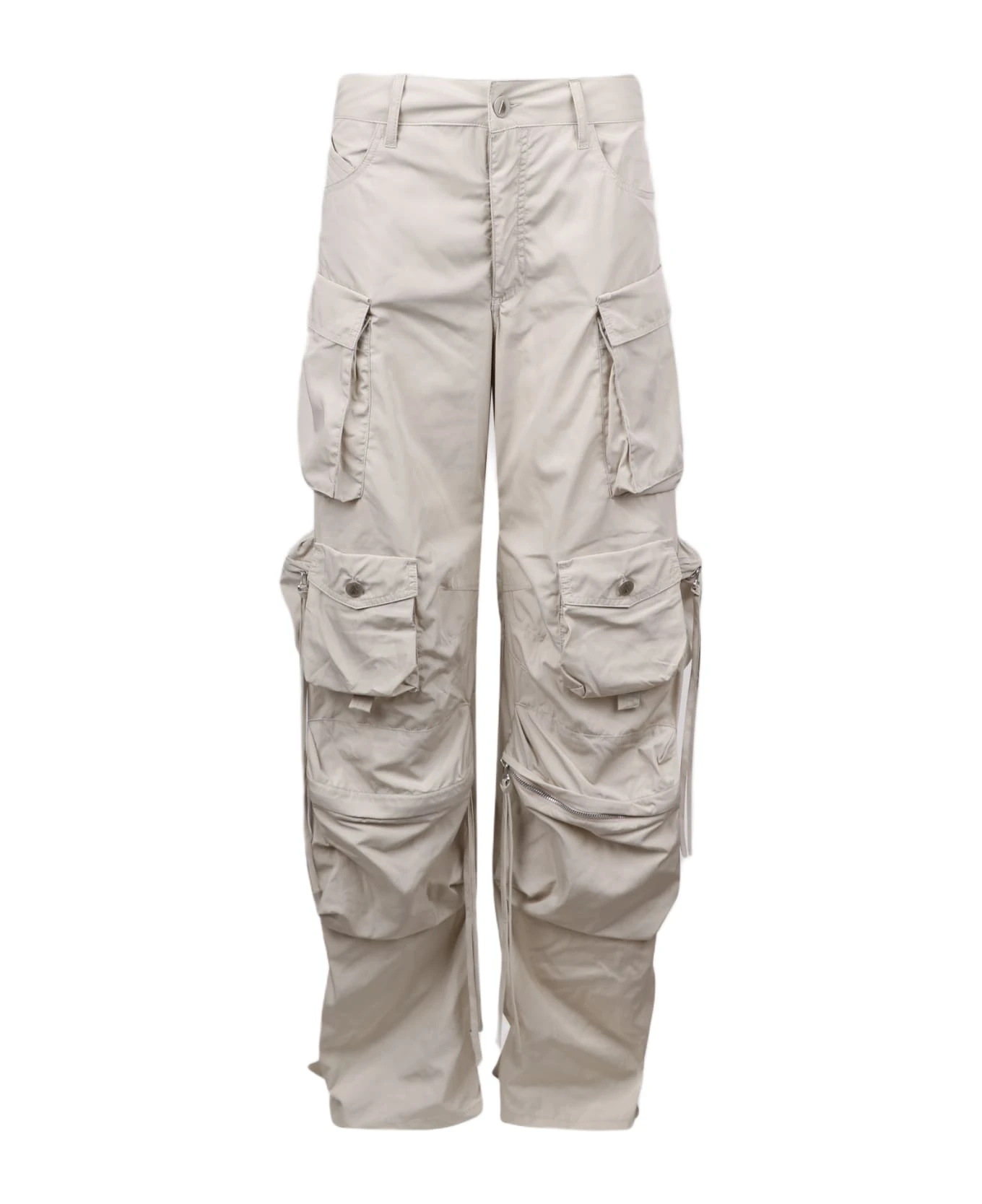 High-waisted cargo trousers from THE ATTICOHigh-waisted. Embroidered logo to the rear. Belt loops. Front button and zip fastening. Two side inset pockets. Multiple cargo pockets. Two rear patch pockets. 100% Polyester. Made in Italy.