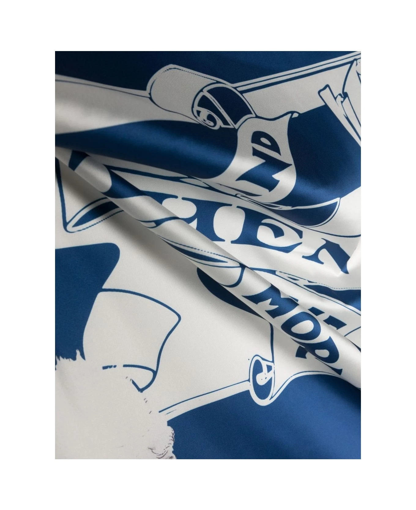 A scarf from the “Lorenza Longhi x MSGM” collaboration made of lightweight fabric with prints and graphics that emphasise the college inspiration: banners and lettering, hearts, cats and polka dots break down and recombine in sophisticated and fun tableaux, classic and hyper-contemporary at the same time.