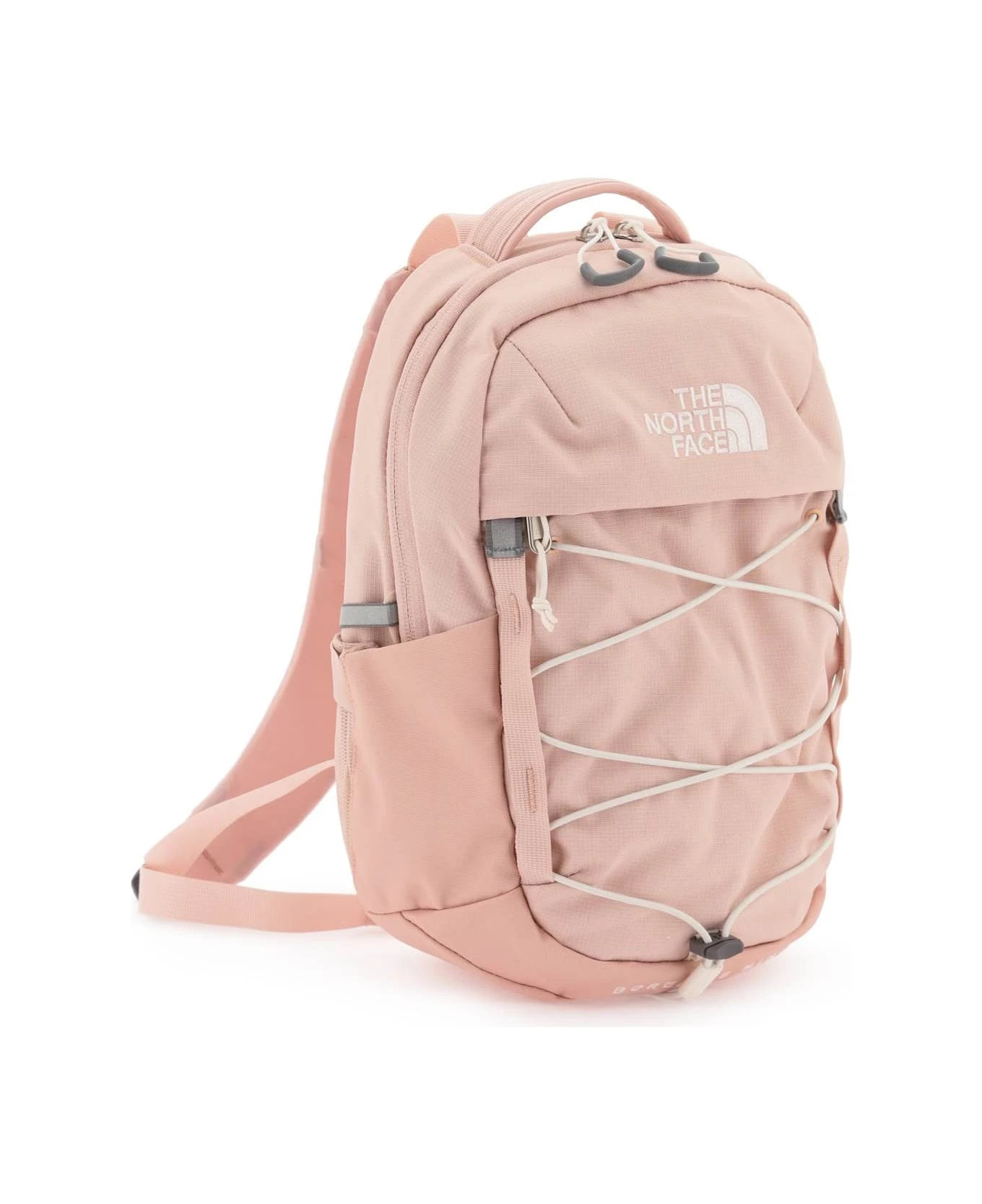 The North Face Borealis backpacl crafted in nylon ripstop with embroidered lettering logo on front. Top handle and padded adjustable shoulder straps, front zippered pocket, “Borealis Mini” embroidery, criss-crossed elastic, side pockets, padded back. Fbric-lined interior with padded tablet pocket, mesh zippered pocket. Silver-finished metalware.