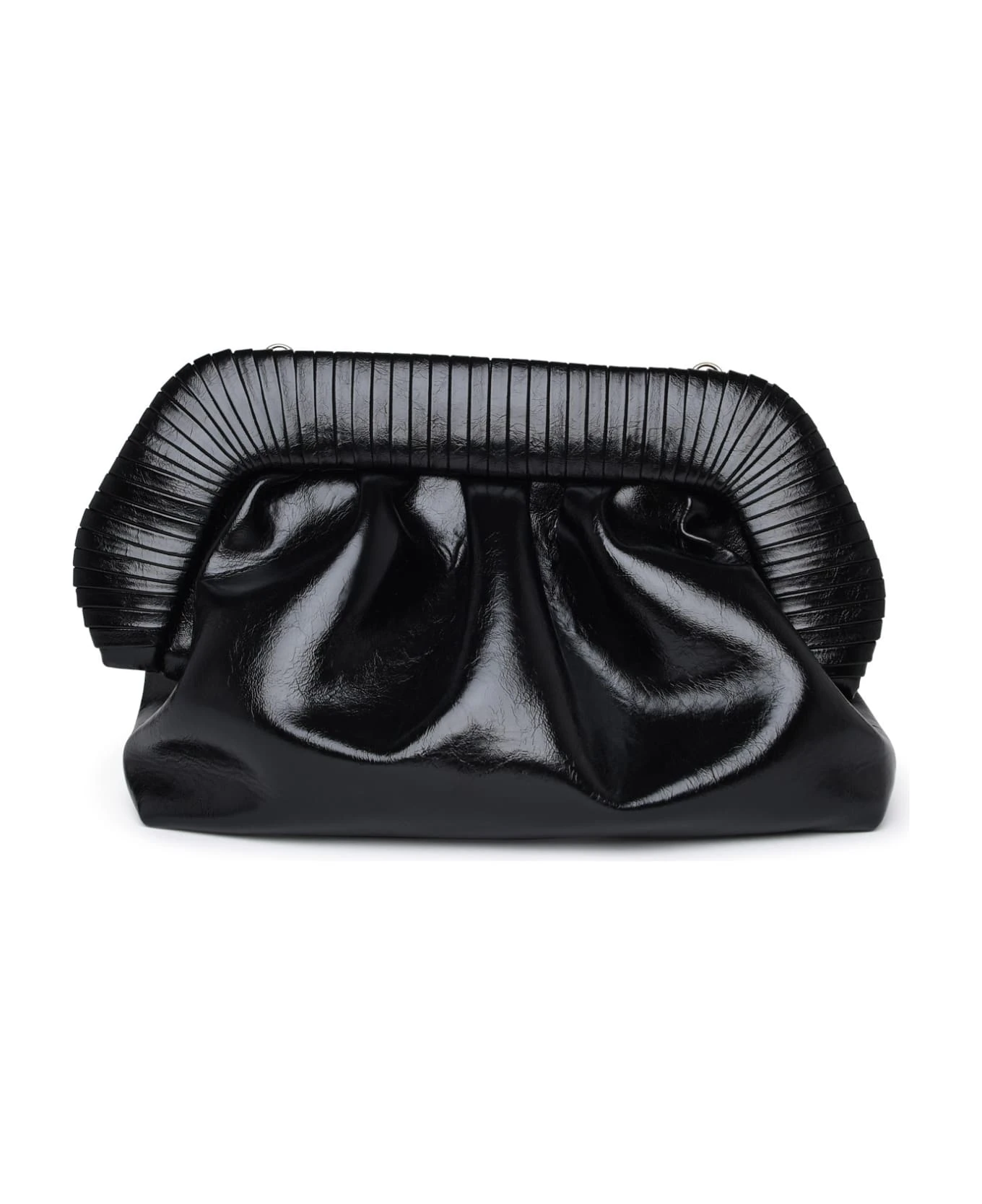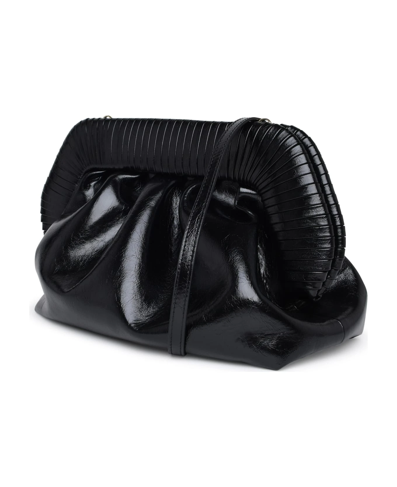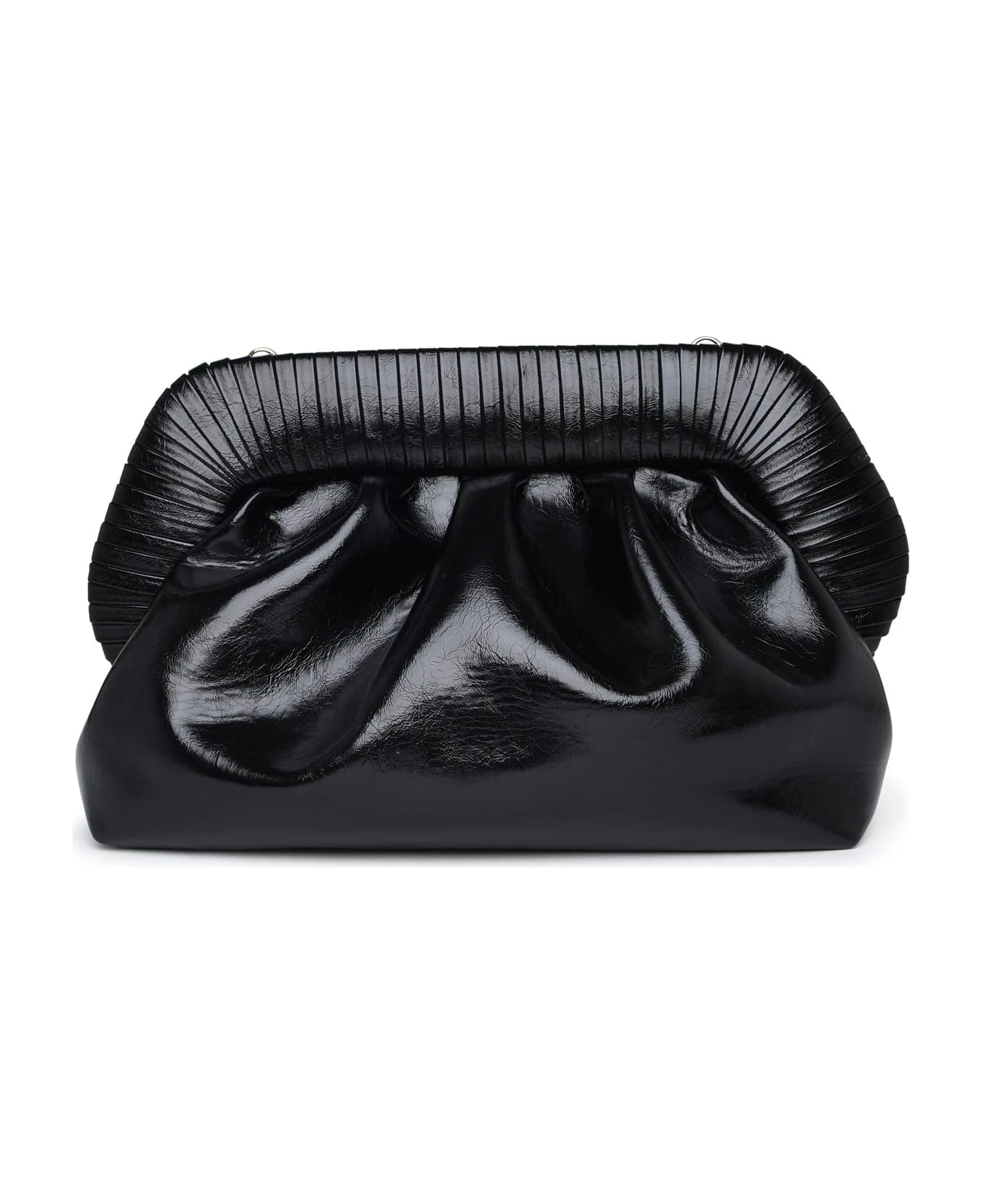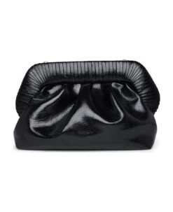 Bag made of shiny vegan leather with stripes detail on the top, removable and adjustable leather shoulder strap, top magnetic closure, inner label with embroidered logo n32 x 18 x 15 cm