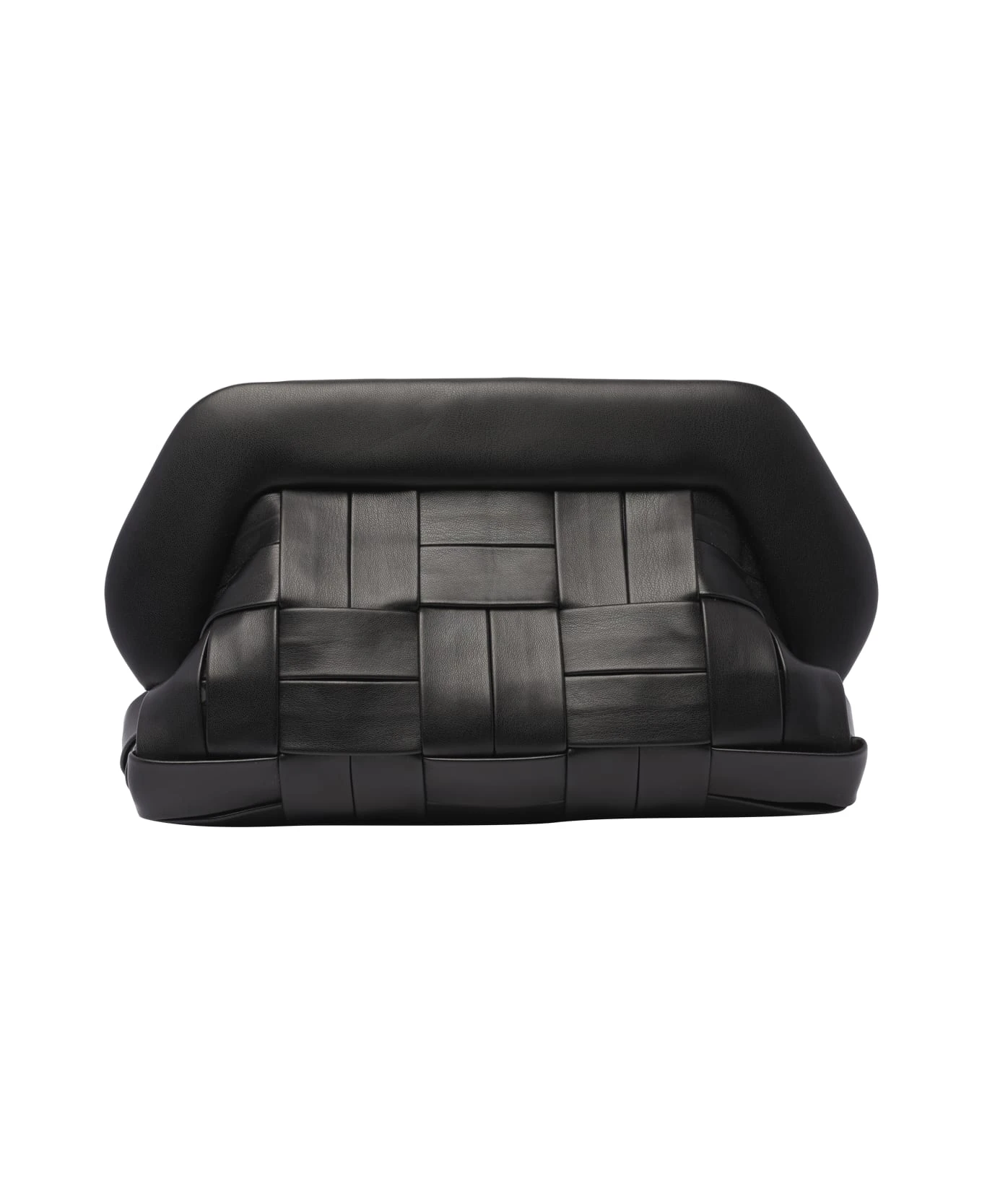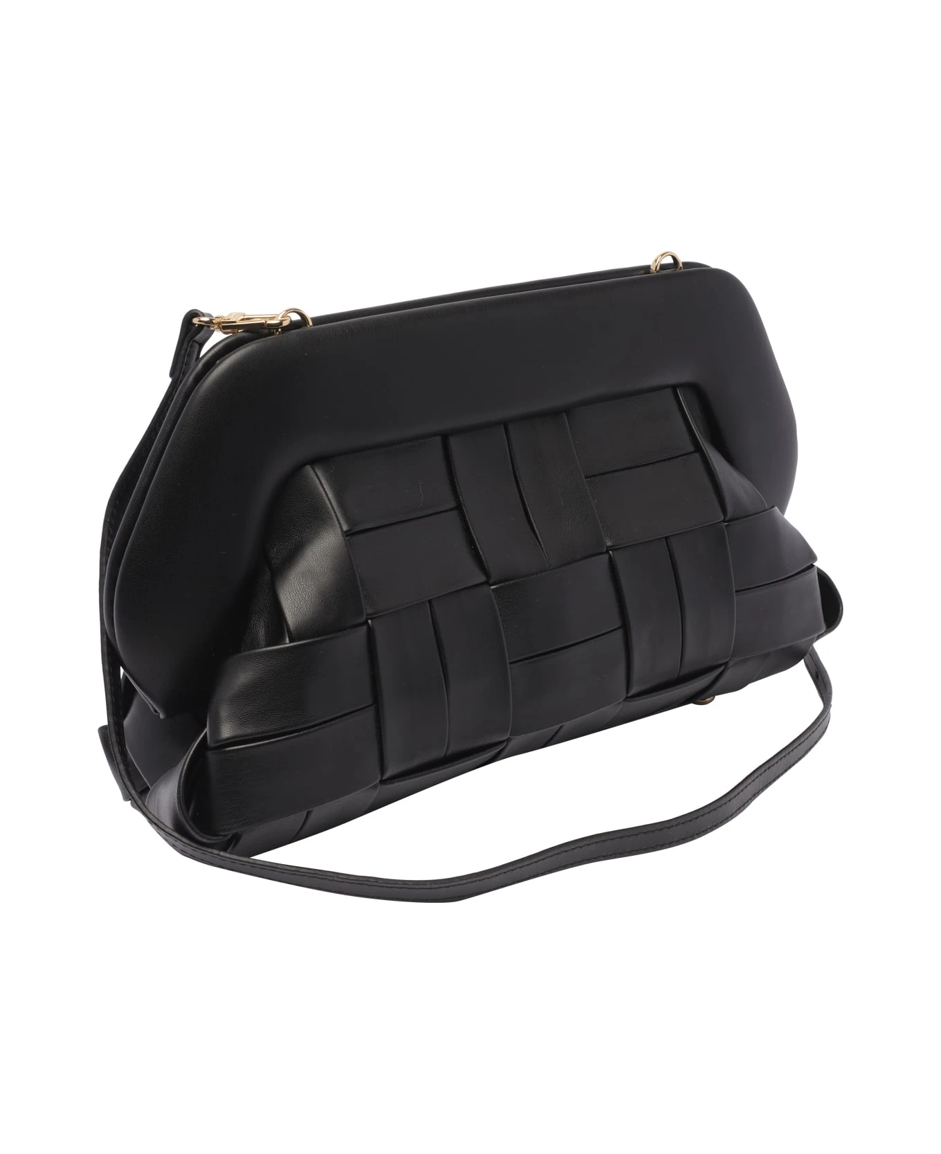 The Moire’ black Bios flat weaved clutch, magnetic closure, adjustable and removable shoulder strap