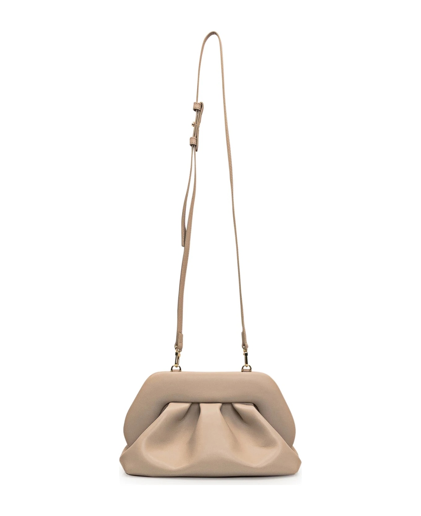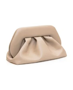 Beige vegan clutch bag. Removable and adjustable shoulder strap. Magnetic closure.