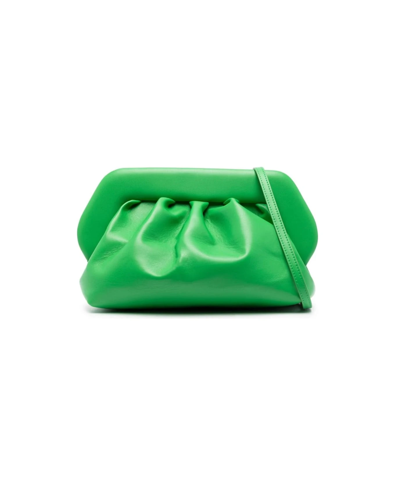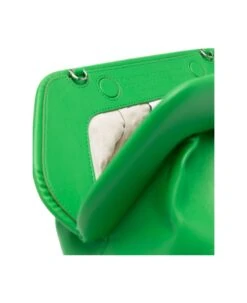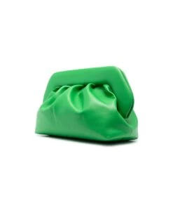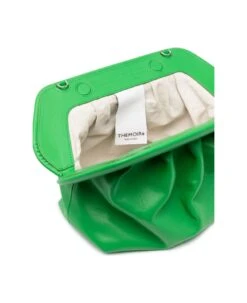 THEMOIRĂ© clutch bag made of smooth vegan leather in Tea Tree colour and lined with recycled materials. Model with a soft design characterised by a single internal compartment, top magnetic closure and removable shoulder strap to wear the bag on the shoulder or crossbody. The brand’s mission is to create products with the lowest possible environmental, ethical and eco-friendly impact. In fact, even the labels on the bags are made from recycled paper.