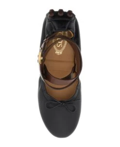 Tod’s Bubble ballerinas made of soft leather with decorative bow and stretch trims. Finished with removable ankle strap in contrasting grained leather with buckle featuring gold-tone metal T Timeless buckle. Leather lining, iconic grommets running from sole to heel.