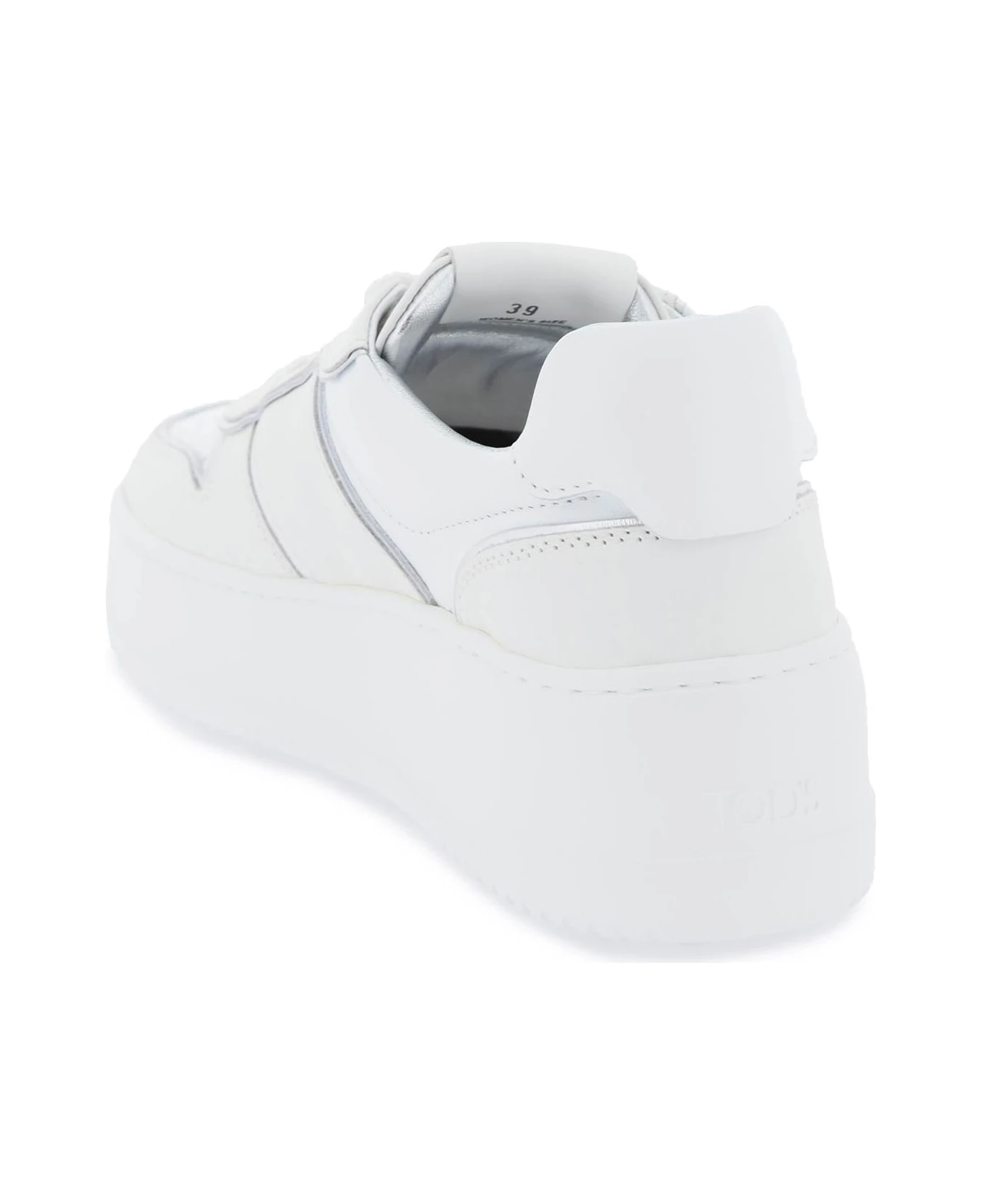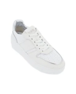 Tod’s sneakers made of smooth leather with laminated inserts and embossed logo on the side. Perforated toe, lace-up closure, leather logo patch on tongue, leather interior with removable fabric insole, and platfrom rubber sole with iconic pebbles.
