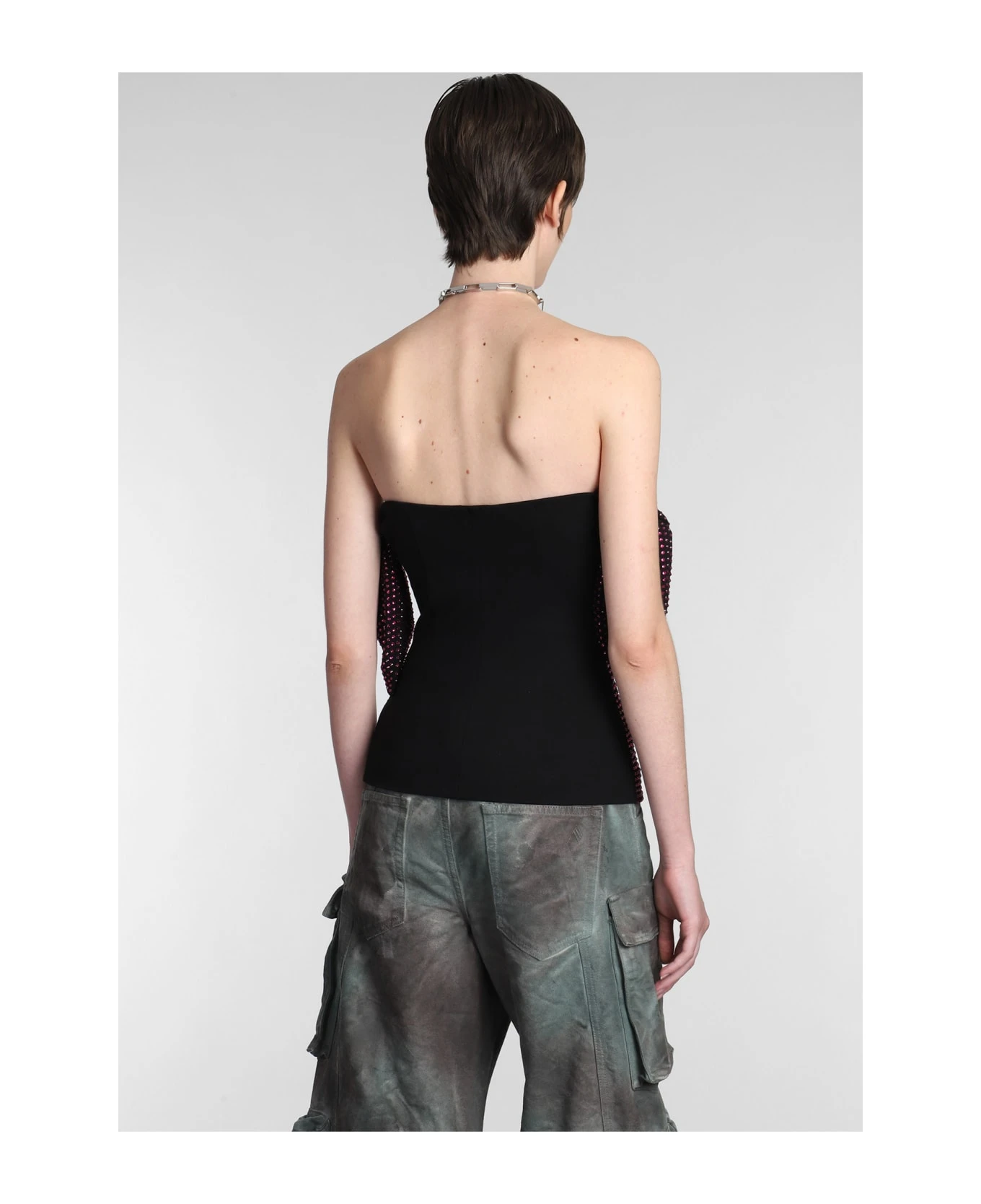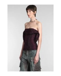Topwear in fuxia Rayon, strapless, knot details , crystals detail, 68% rayon, 27% polyamide, 5% Elastan, Made in Italy, model is 180 cm and wears size 40