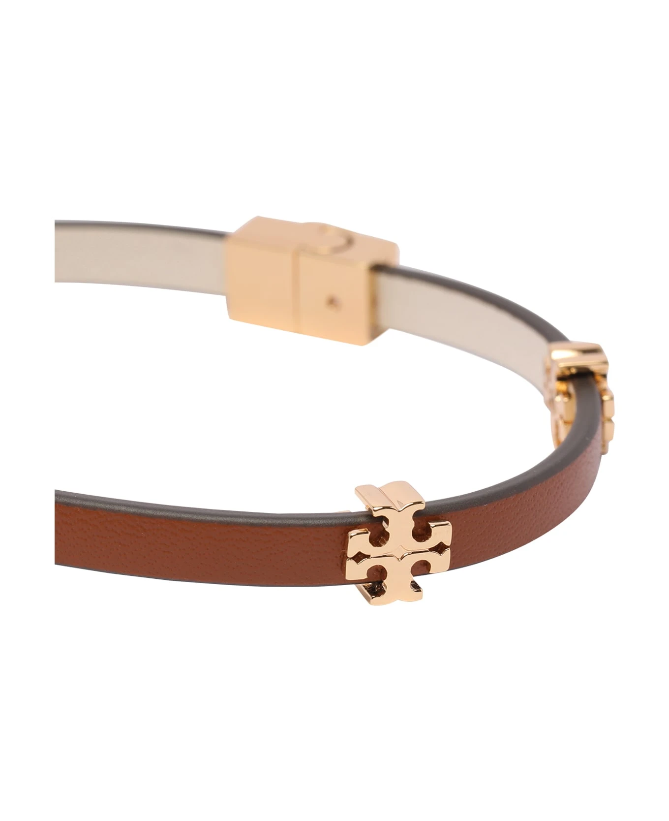 Tory Burch brown Eleanor bracelet, all over plaque logo, hook closure
