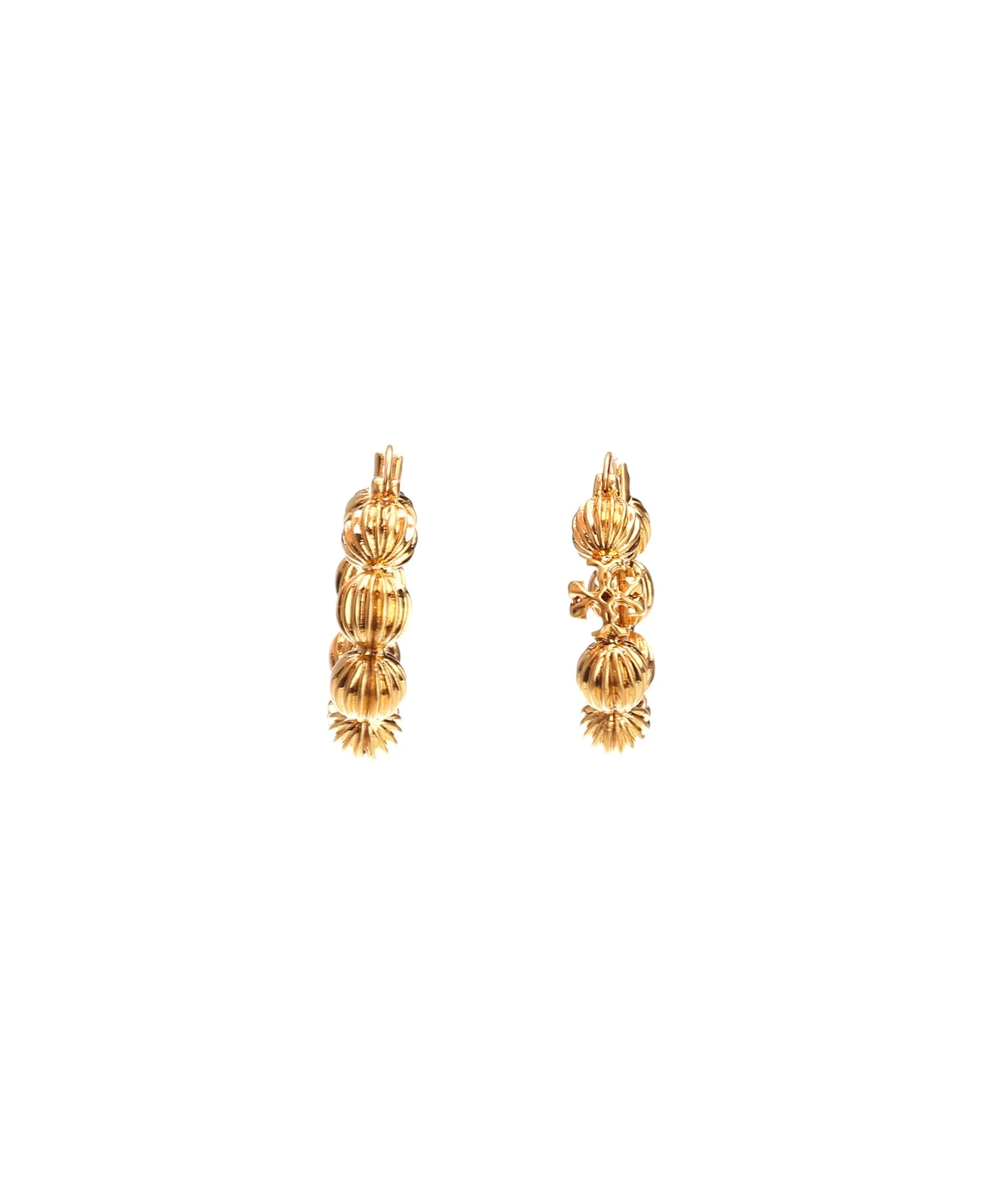 “Roxanne” hoop earring from Tory Burch, fluted golden brass beads