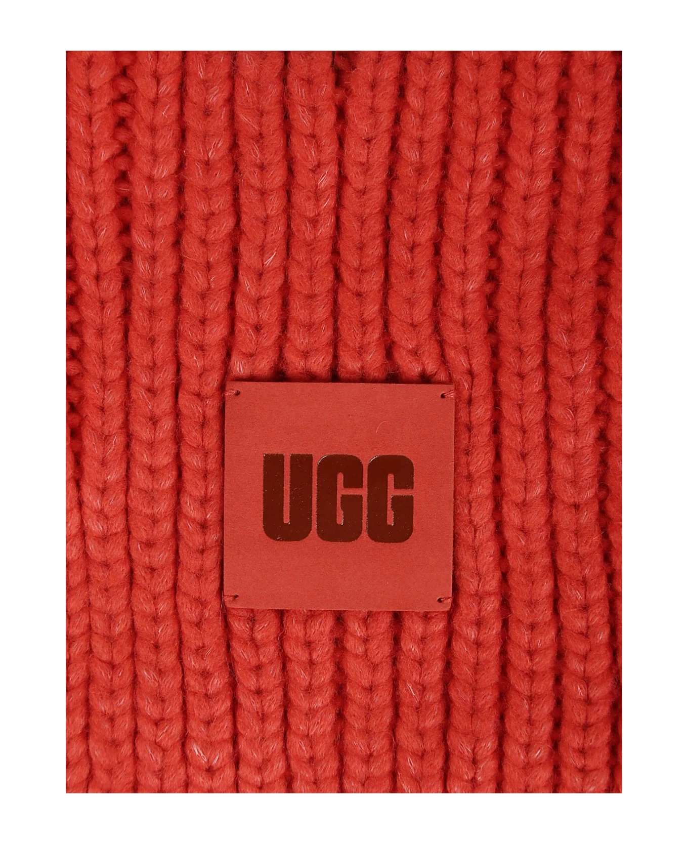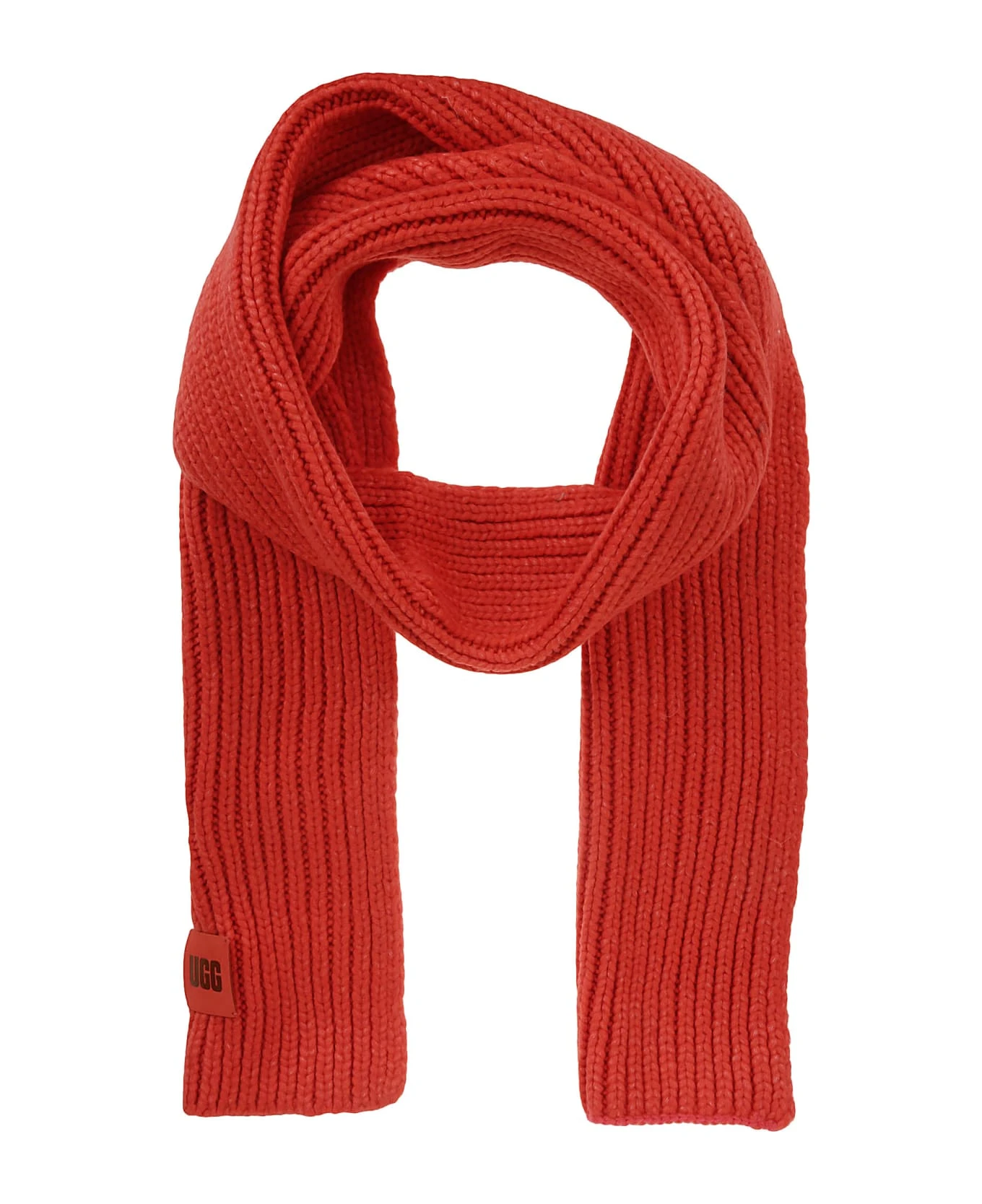 Ugg Red ribbed scarf, logo detail.