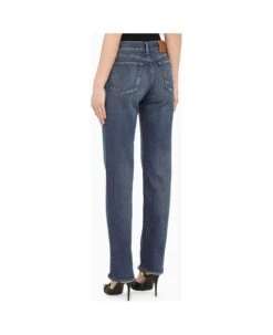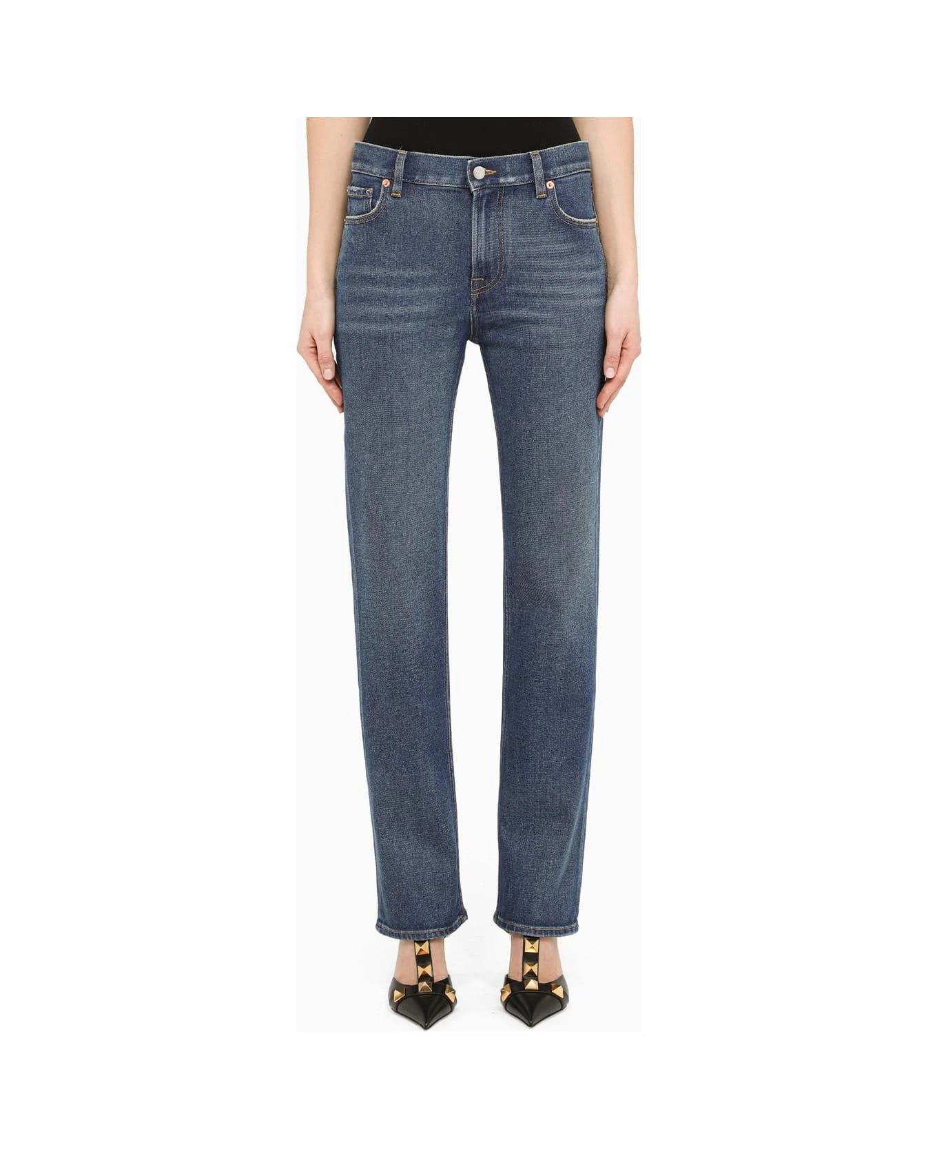 Jeans by Valentino in blue denim, featuring closure with zip and button, belt loops at the waist, five pockets and contrasting logo patch on the back.