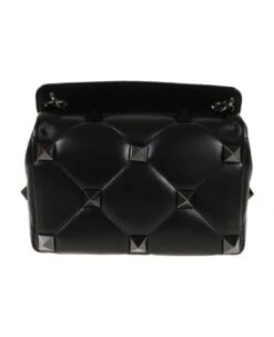 Medium bag with Roman Stud chain BY VALENTINO GARAVANI. In lamb nappa. Featuring a quilted nappa leather with a break texture with tone-on-tone stitching and embellished with maxi studs, brand features in ruthenium like the other metal parts. Turn lock closure; inside zip pocket and two flat open pockets. The bag can be worn both on the shoulder and by hand thanks to the removable handle and the sliding and removable chain. Ideal for an elegant and feminine outfit both with the ballerina or the matching decolte` from the Roman Stud collection, or with a sneakers!