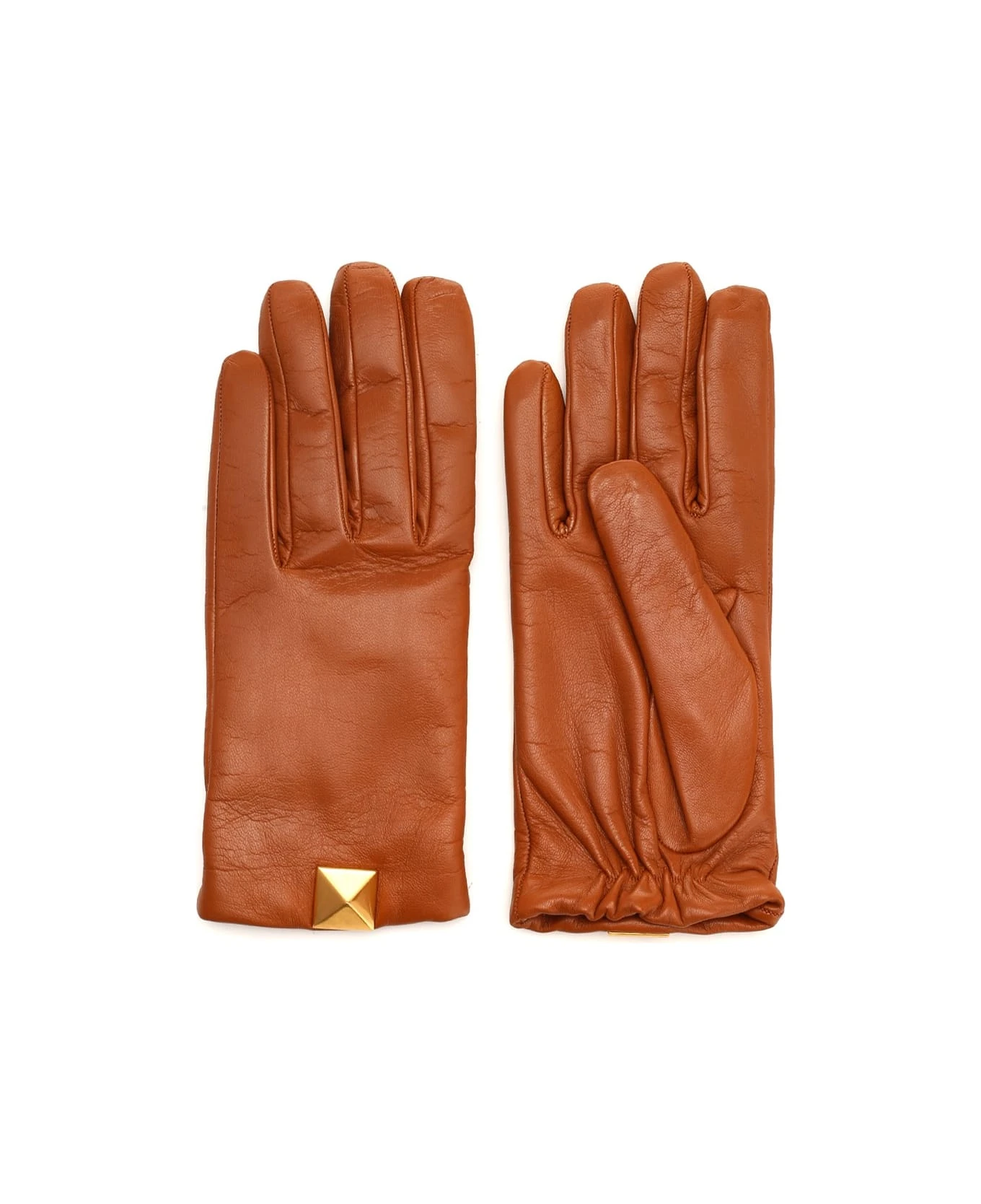 Leather-colored nappa leather glove with maxi stud by Valentin Garavani with cashmere inside.