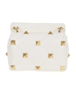 Medium bag with Roman Stud chain BY VALENTINO GARAVANI. In lamb nappa. Featuring a quilted nappa leather with a break-in texture with tone-on-tone stitching and embellished with maxi studs, branded features in an antique brass color like the other metal parts. Swivel closure; inside zip pocket and two flat open pockets. The bag can be worn both on the shoulder and by hand thanks to the removable handle and the sliding and removable chain. Ideal for an elegant and feminine outfit both with the ballerina or matching decolte` from the Roman Stud SS21 collection, or with a sneakers!