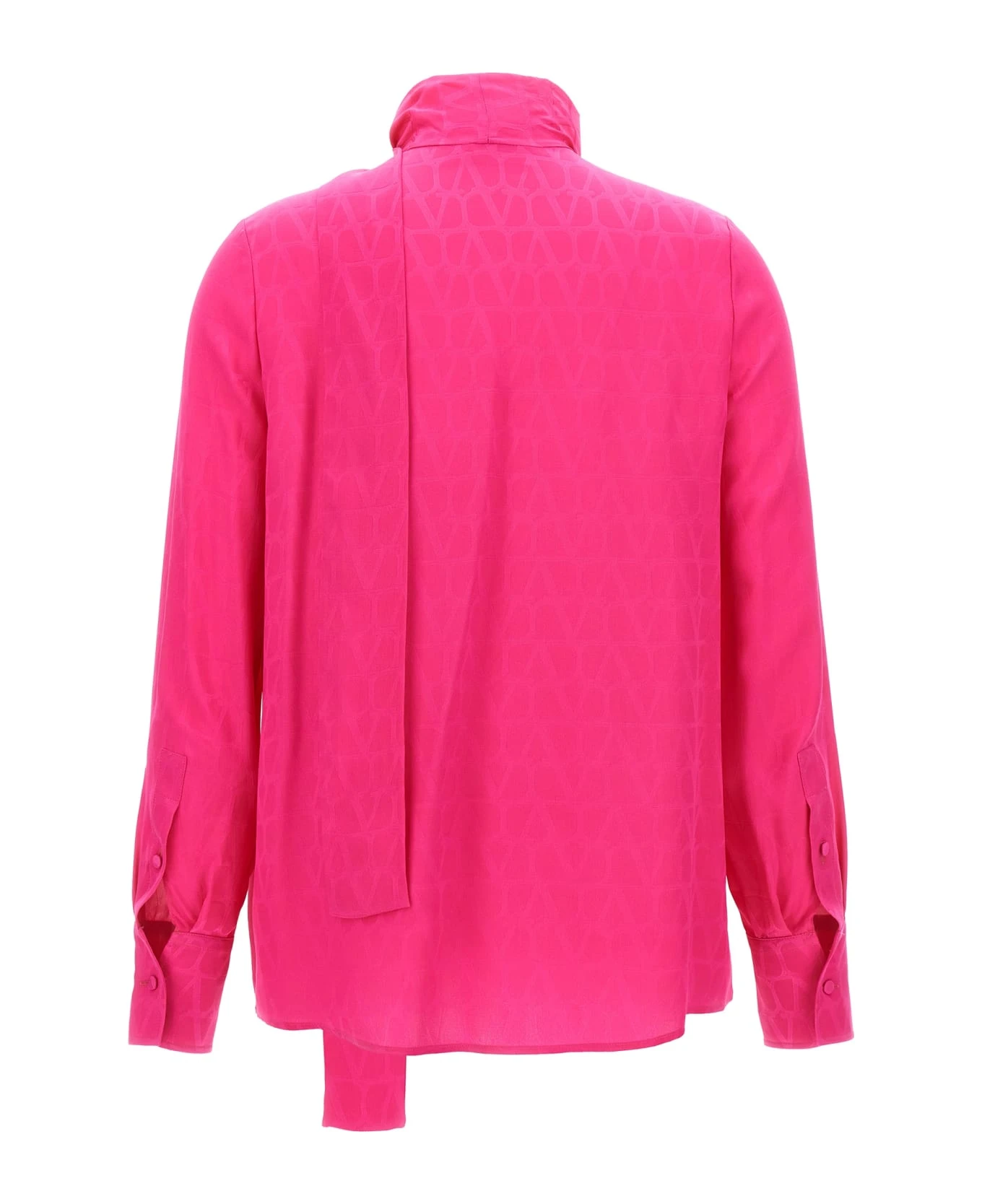 ‘Toile Iconographe’ print silk shirt, button closure, long cuffed sleeves, scarf detail at the neck.