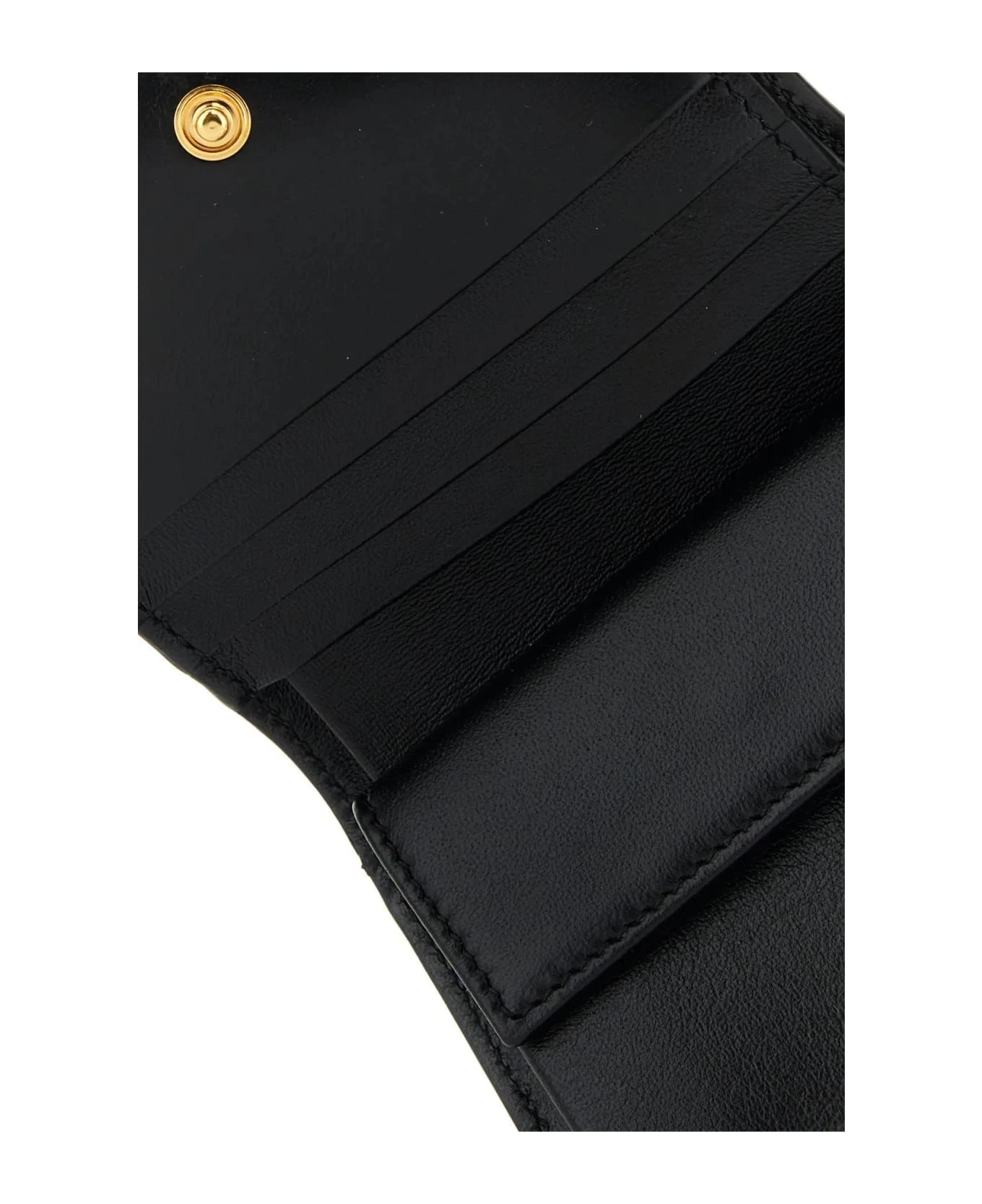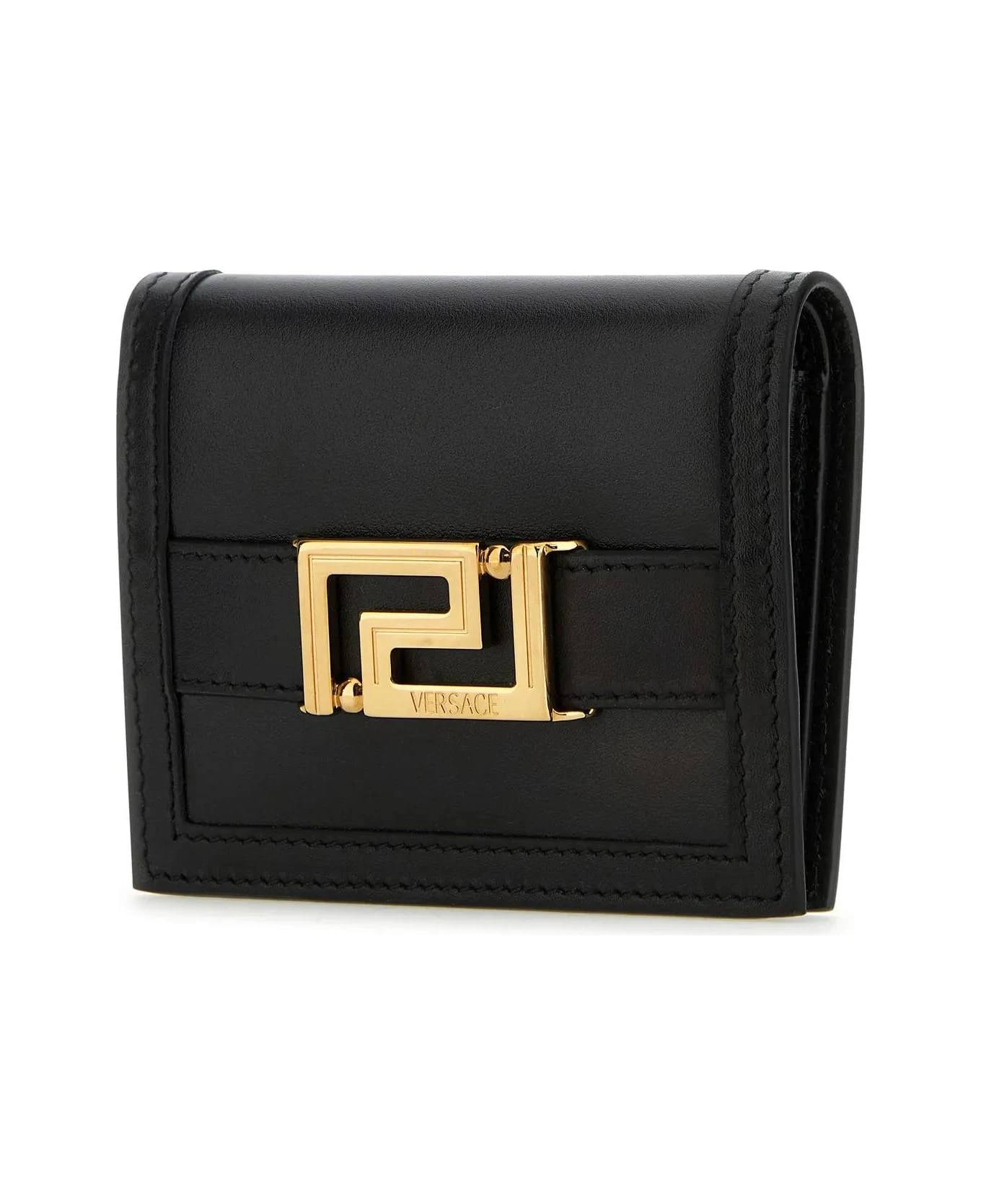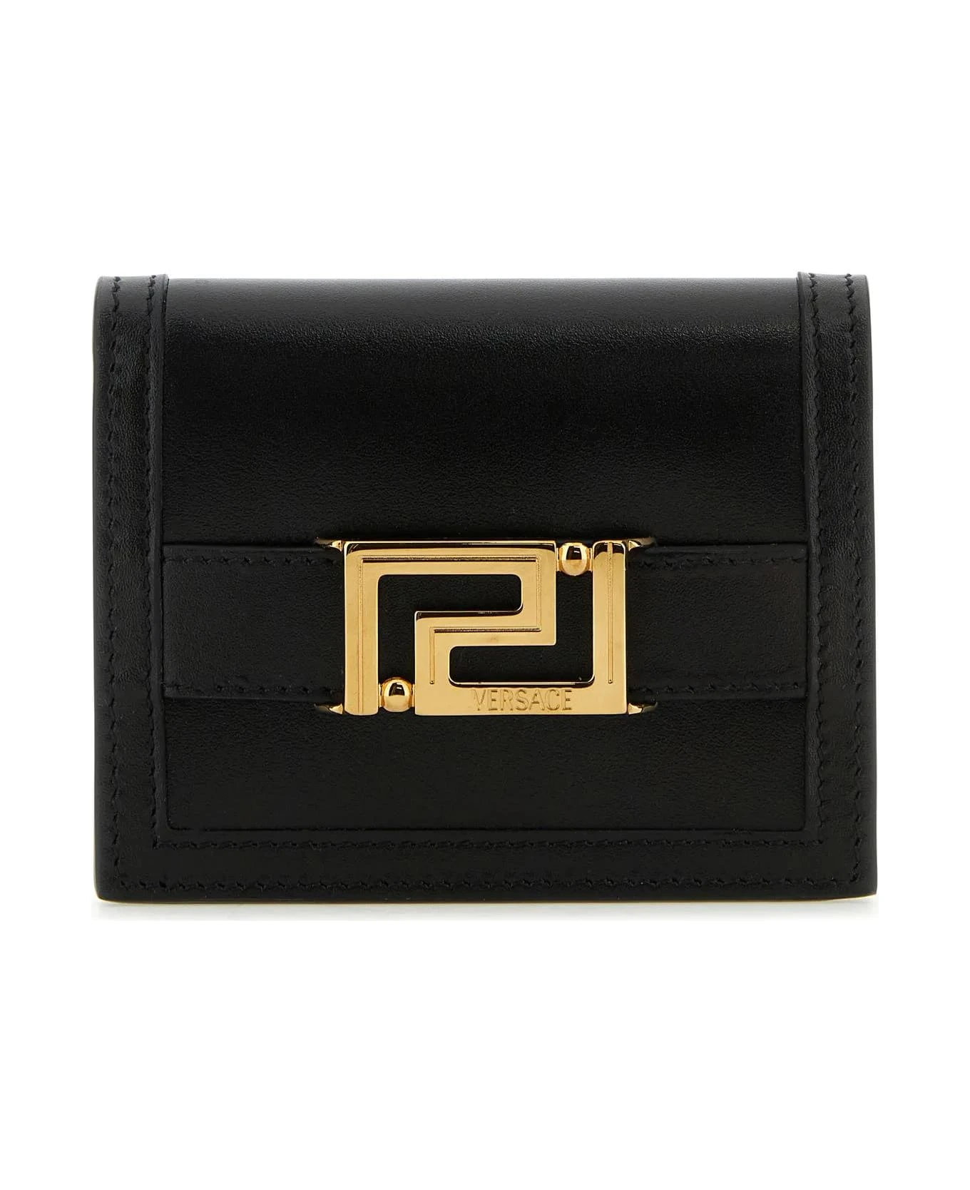 Wallet realized in sightly pebble calf leather enriched by metal La Greca detail at the front.