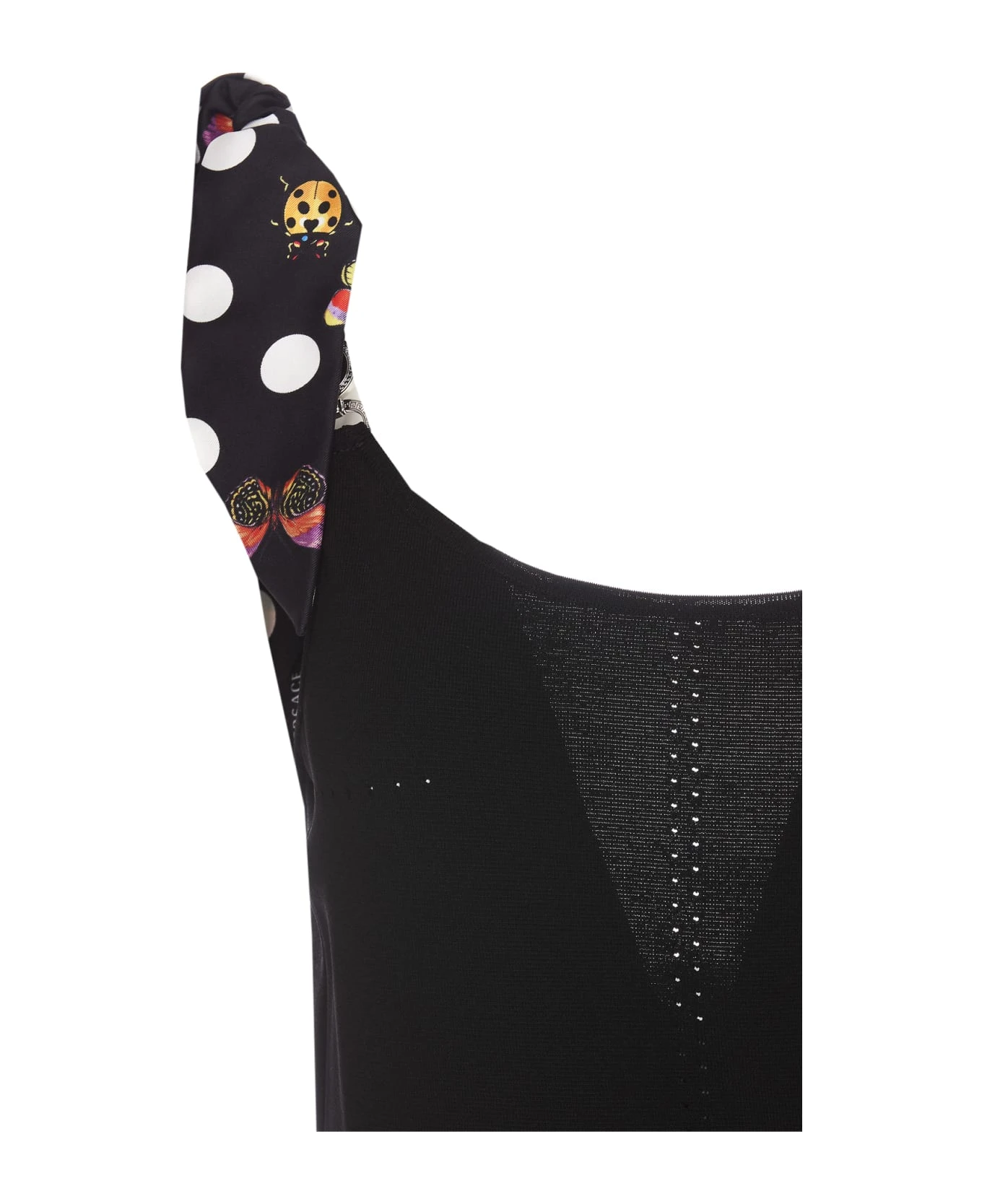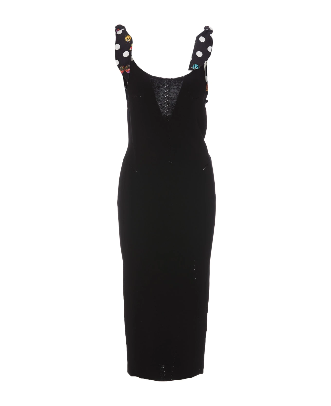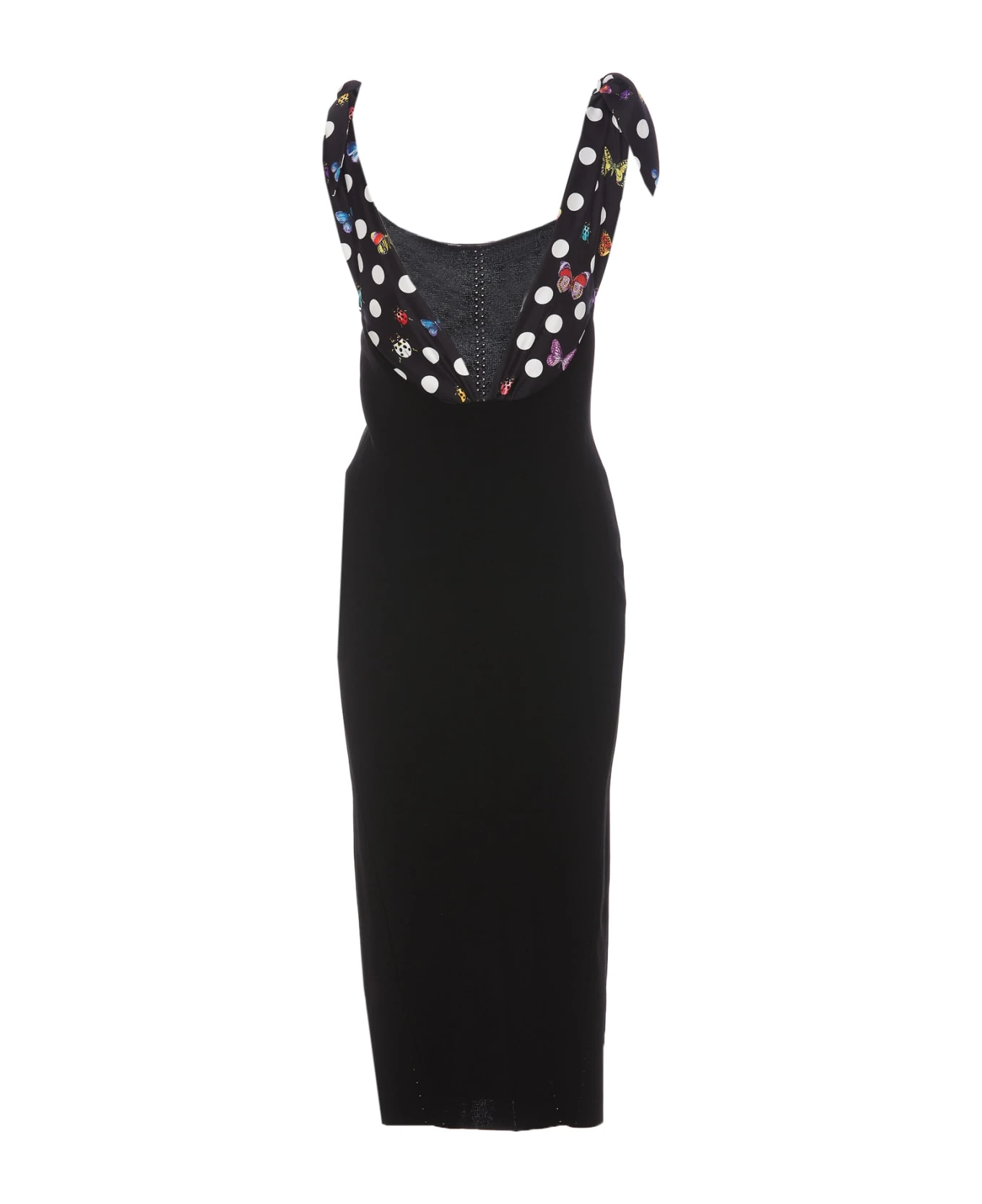 Versace black knit midi dress, Butterflies Medusa ’95 model, elasticized fit, sleeveless, V-neck, tight fit
