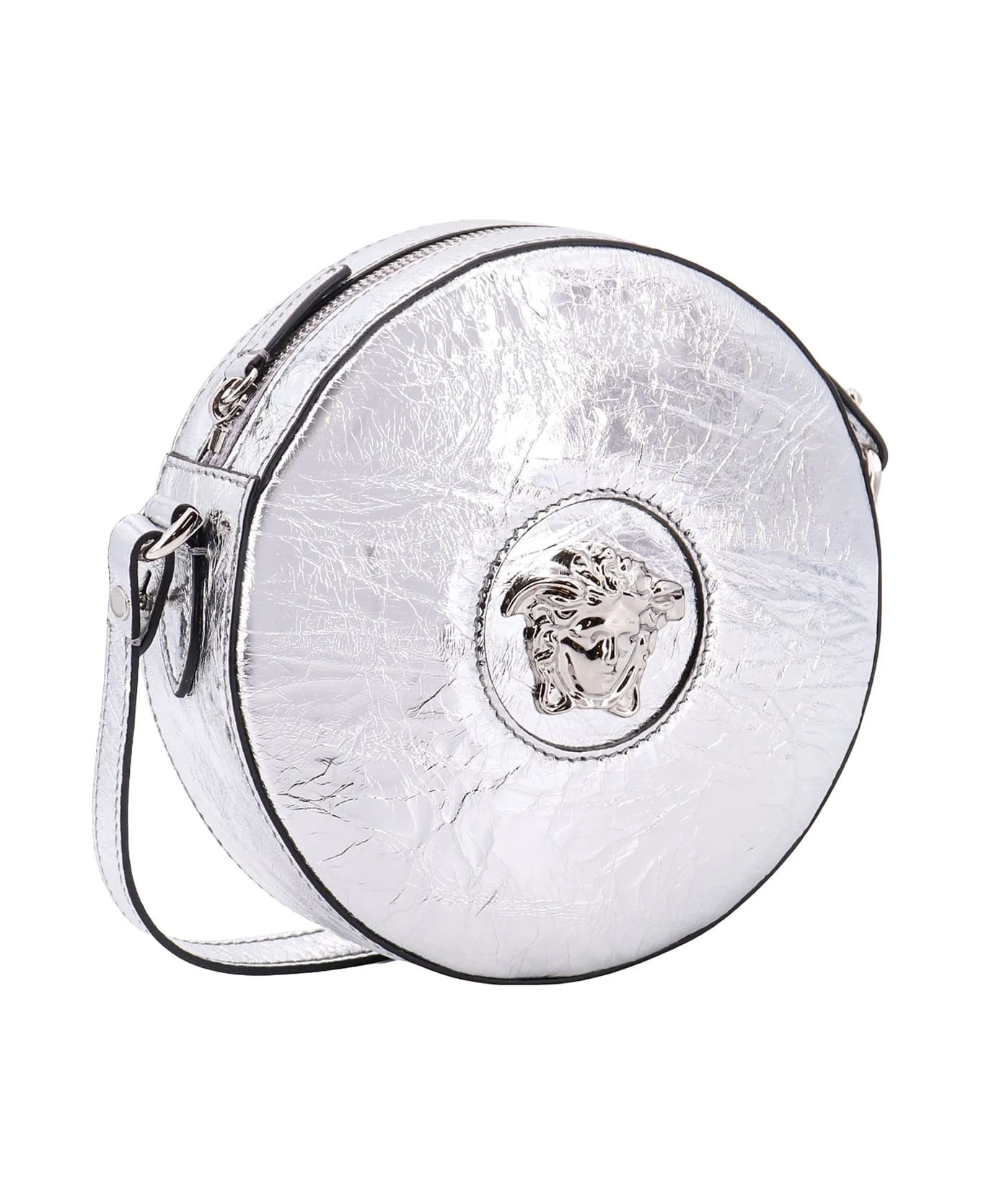 Laminated leather shoulder bag with iconic Medusa