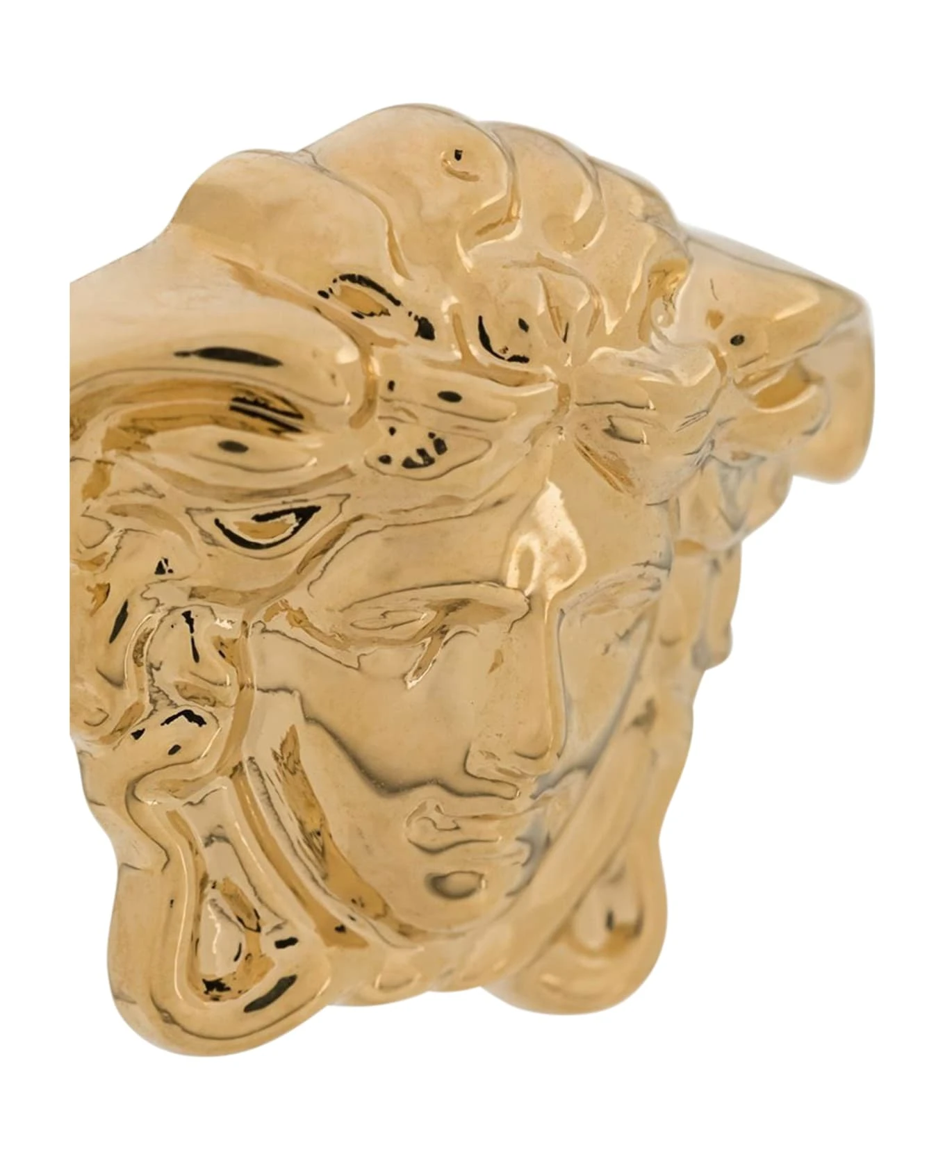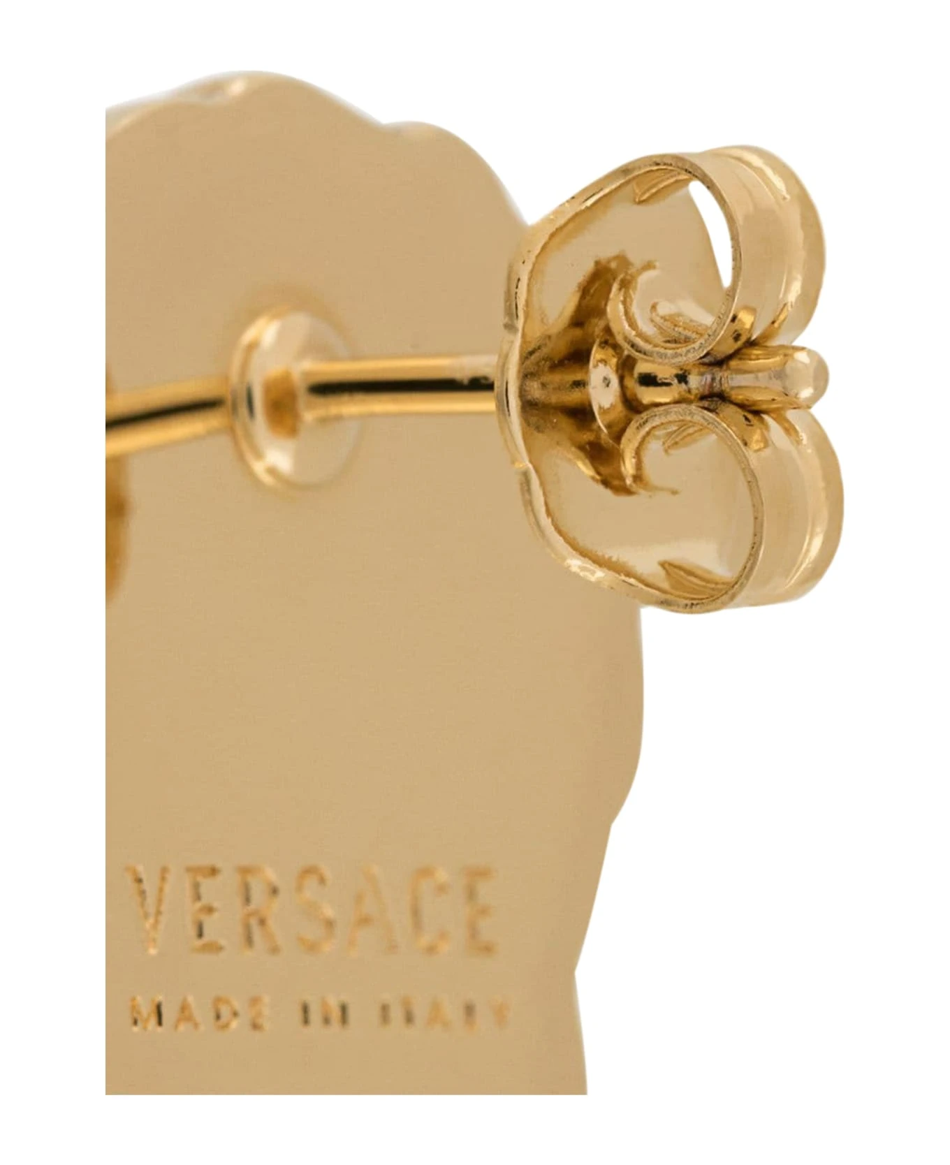 Medusa earrings by Versace. Model with snap closure and engraved logo. These earrings are sold as a pair.