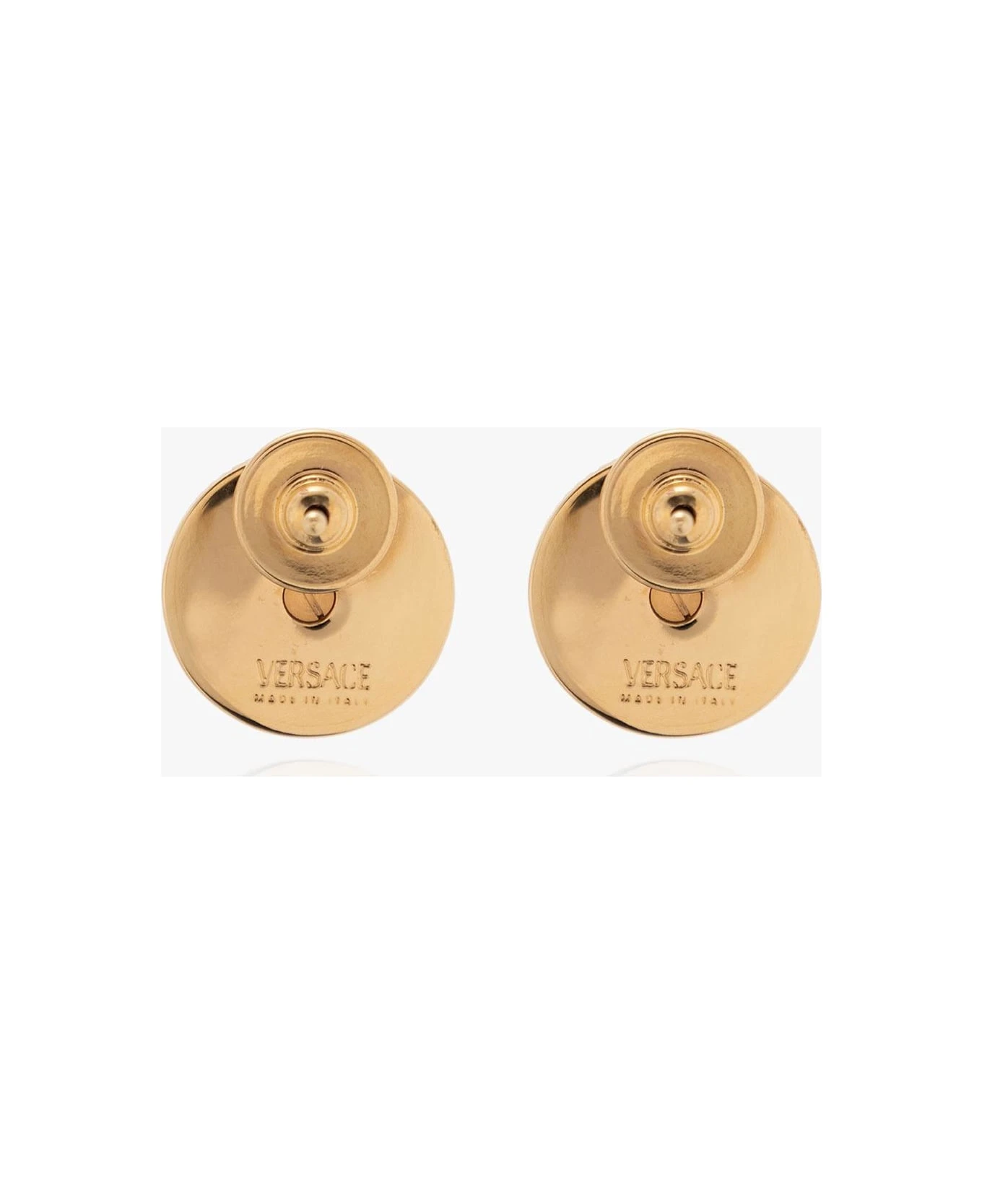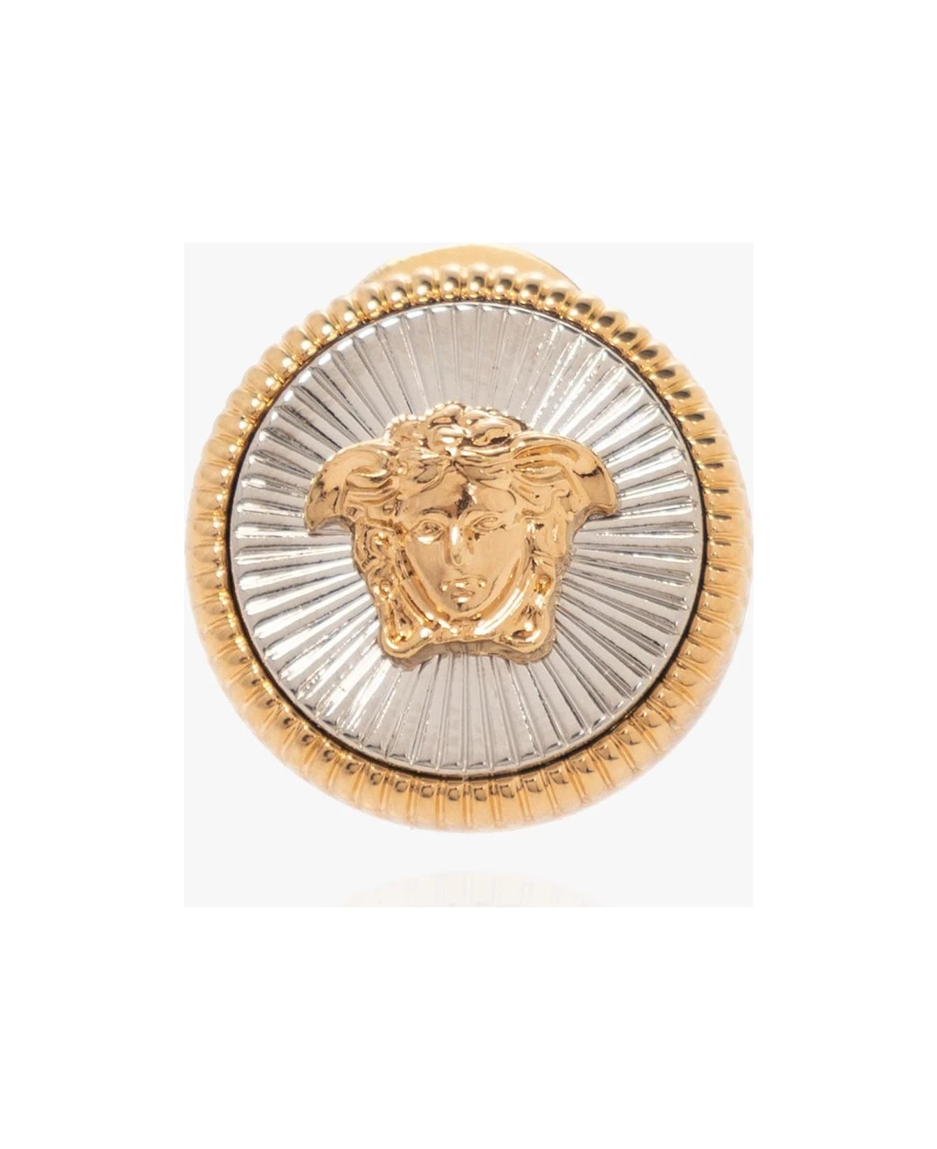 Gold-tone and silver-tone earrings from Versace. Embellished with the brand’s signature Medusa face and engraved detailing, they feature push back closures.
