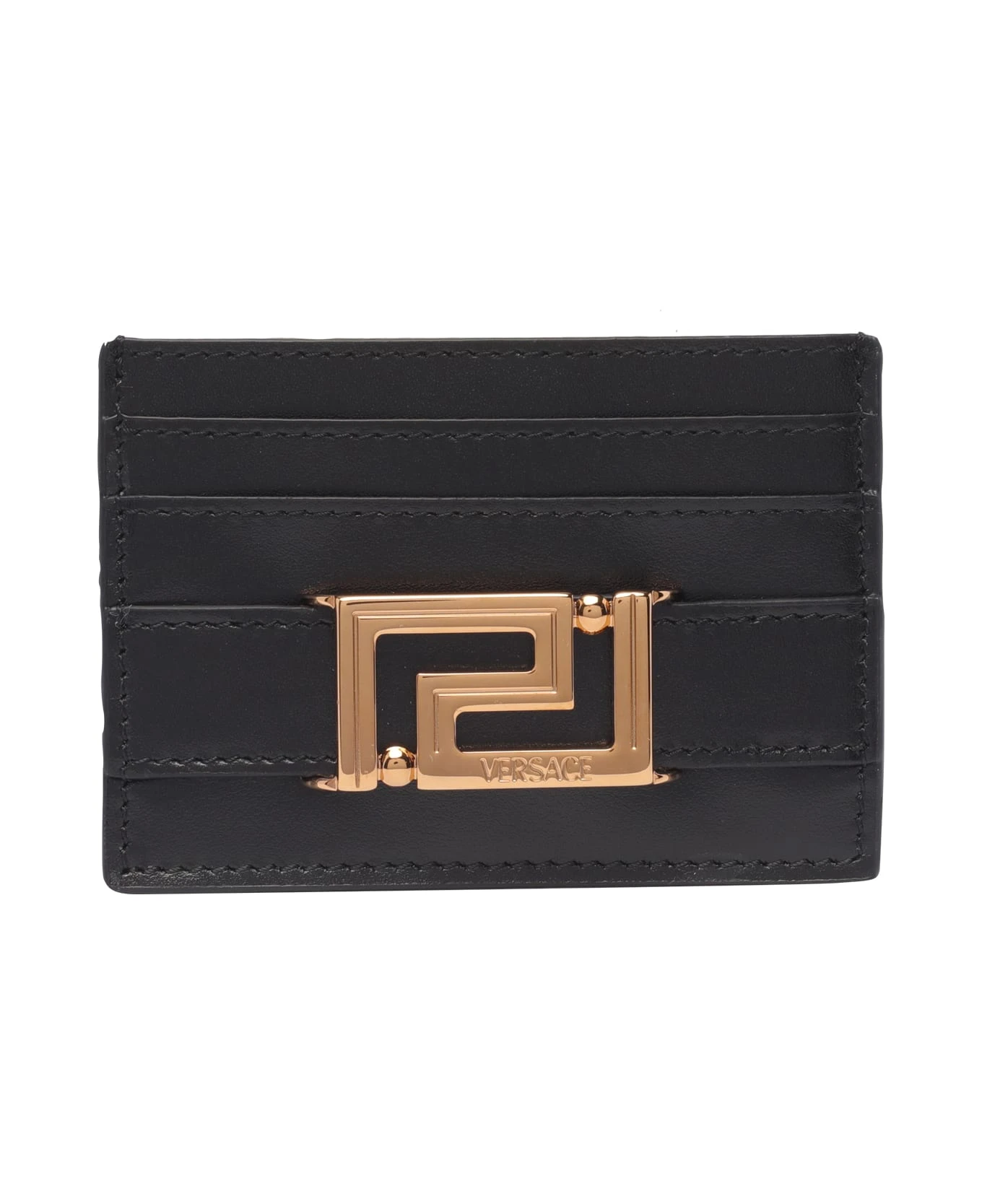 Versace black Greca Goddess cards holder, 4 slots, frontal golden logo