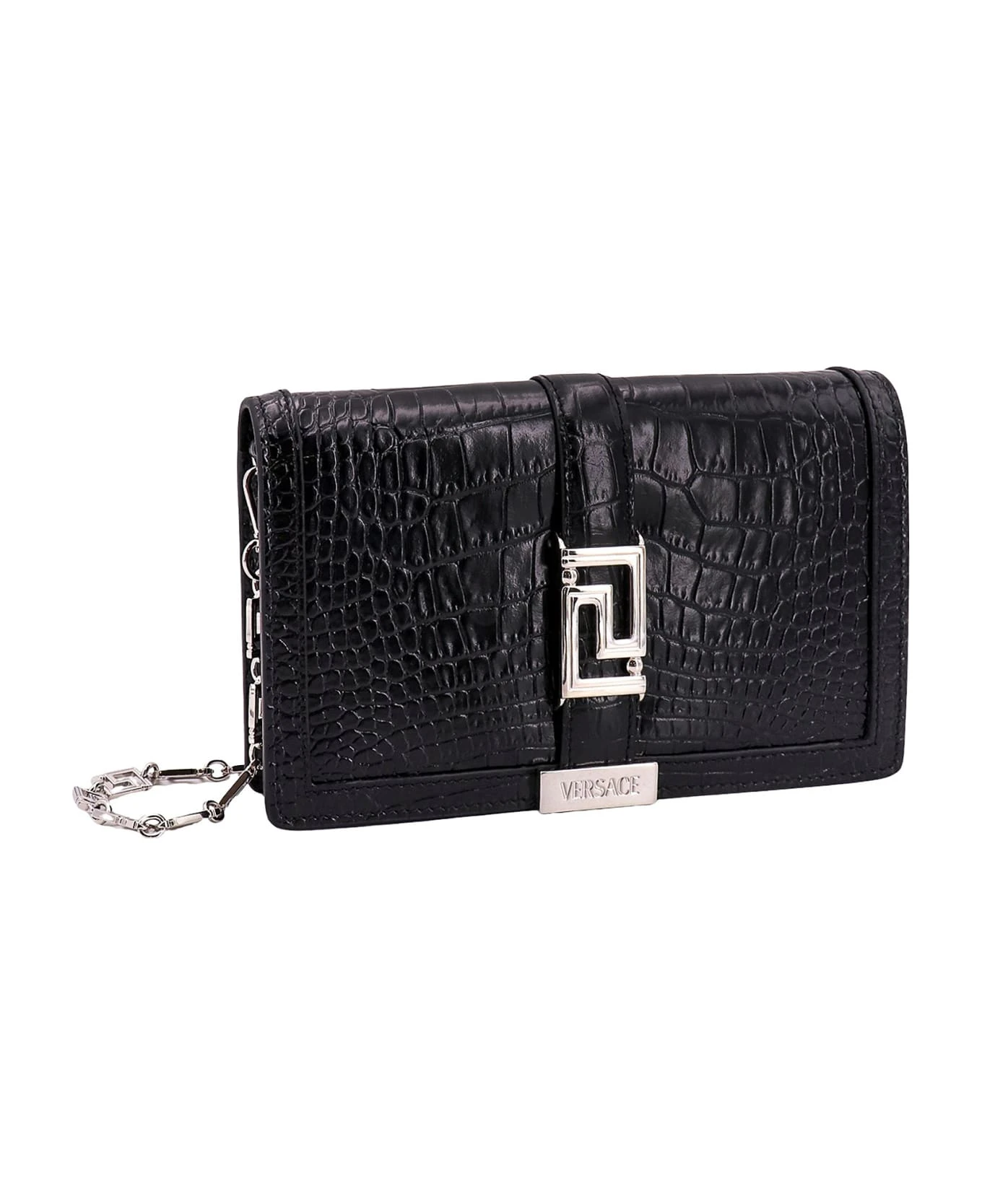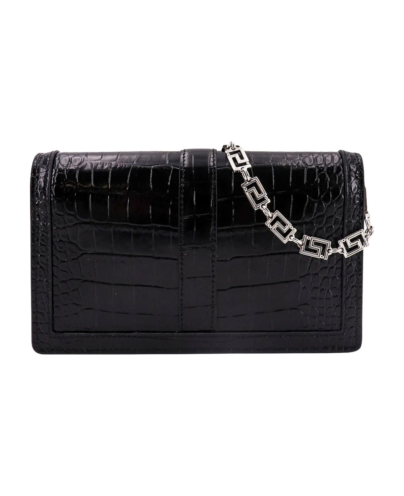 Leather shoulder bag with La Greca metal detail