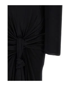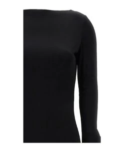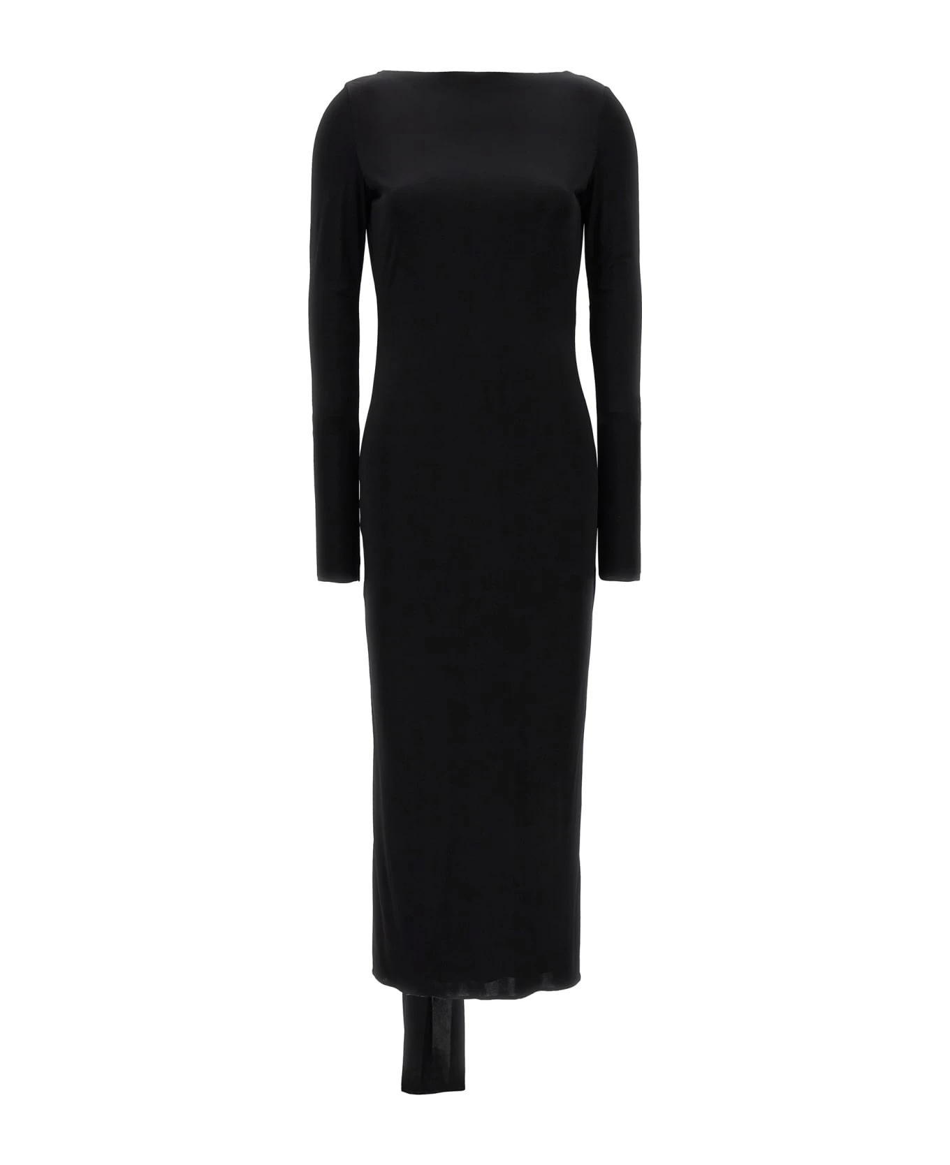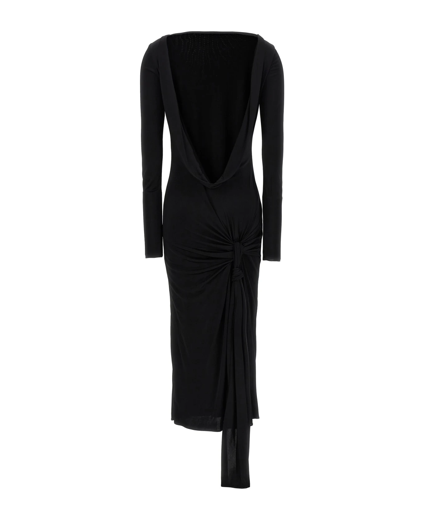La Vacanza long capsule dress in viscose jersey with a wide neckline on the back, long sleeves and a back knot detail.