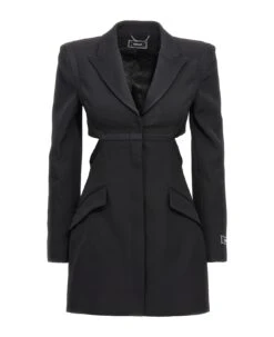 La Vacanza capsule single-breasted blazer in wool with Gianni ribbon details, Medusa metal elements, zip and button closure, long sleeves, cut out detail at the back.