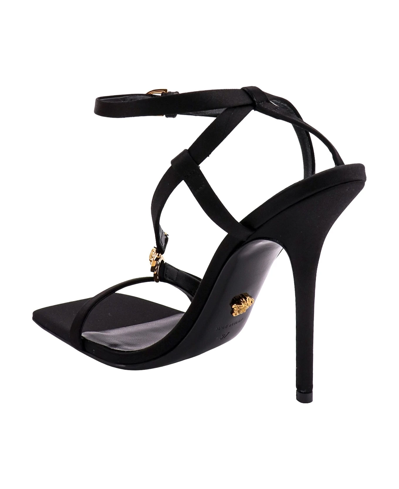 Satin sandals with iconic metal Medusa
