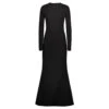 Slim-cut midi dress by Versace in stretch viscose jersey, featuring an elastic belt to cross around the waist enriched by a golden Medusa Biggie detail. Provided with hood, long sleeves, plunging V neckline and side invisible zip fastening. Lined. The model is 177 cm tall and wears a size IT 40.